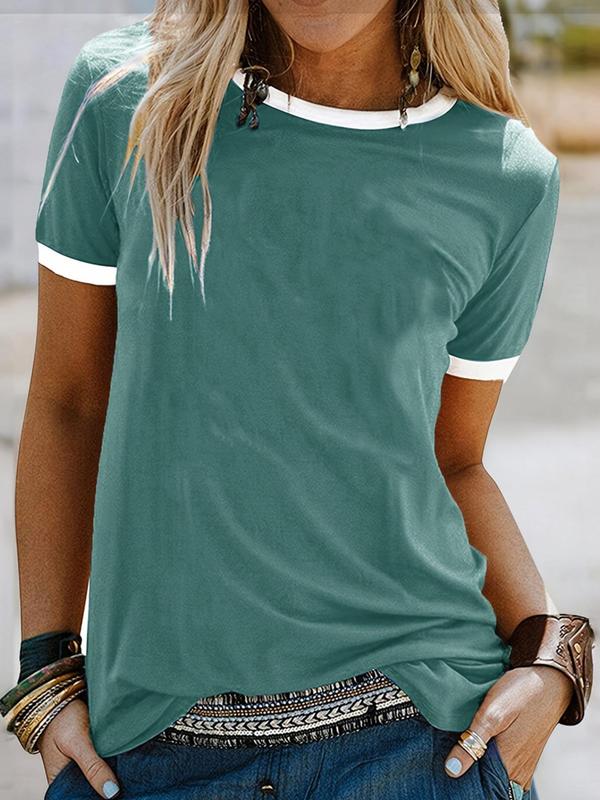 Women's Contrast Trim Crew Neck Tee, Casual Short Sleeve T-shirt for Summer, Ladies Clothes for Daily Wear, Summer Tops
