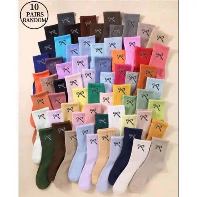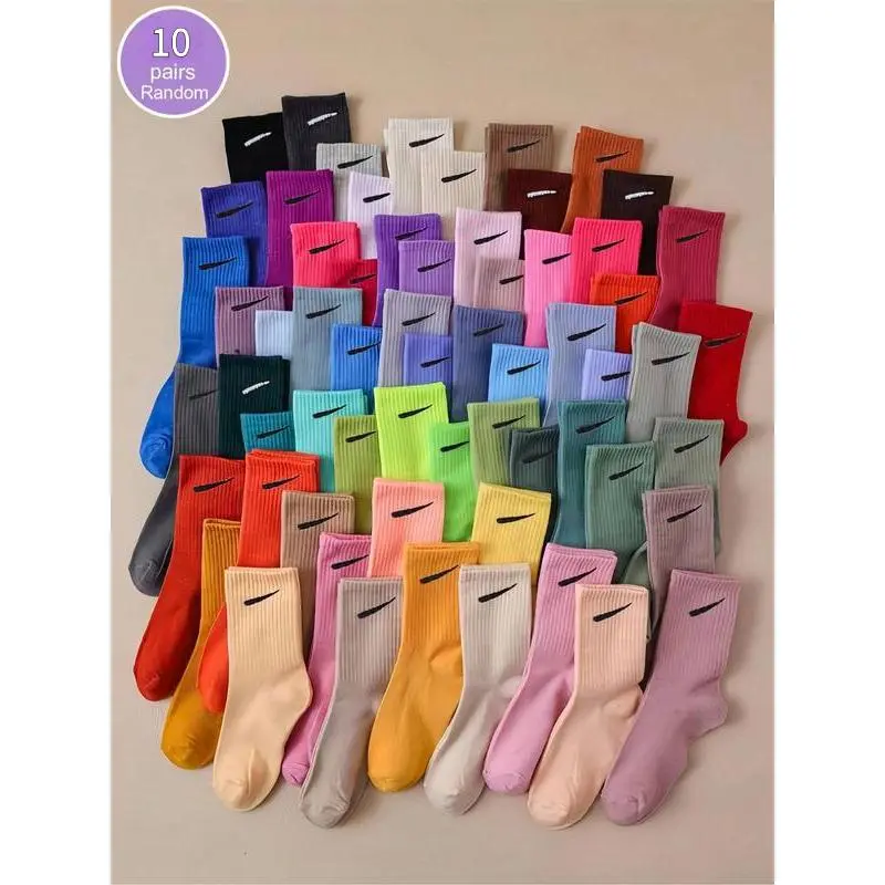 10 pairs of Random Color Women's Crew Socks, Casual Comfortable Breathable Mid-calf Socks for Daily Wear, Multipack Knit Socks for All Seasons, Underwear for Women