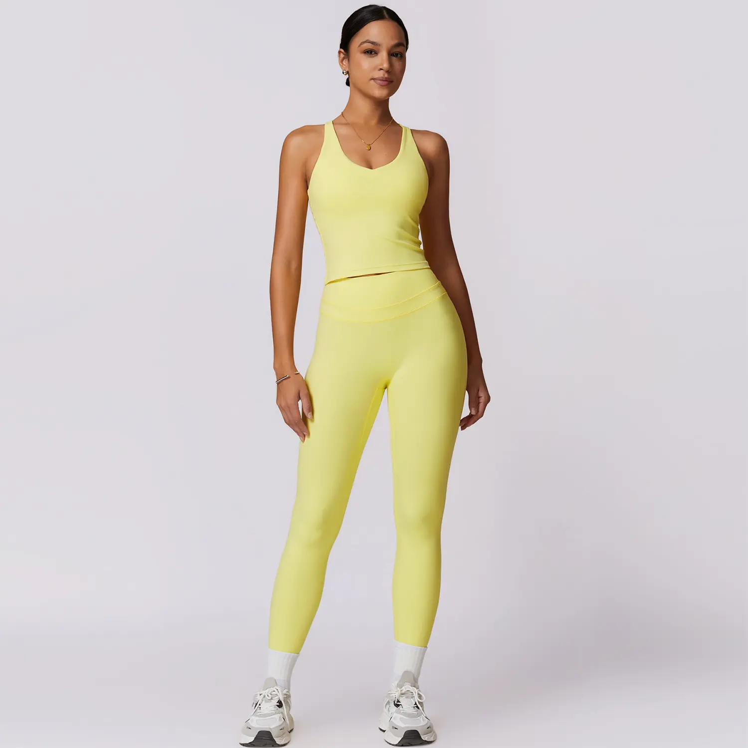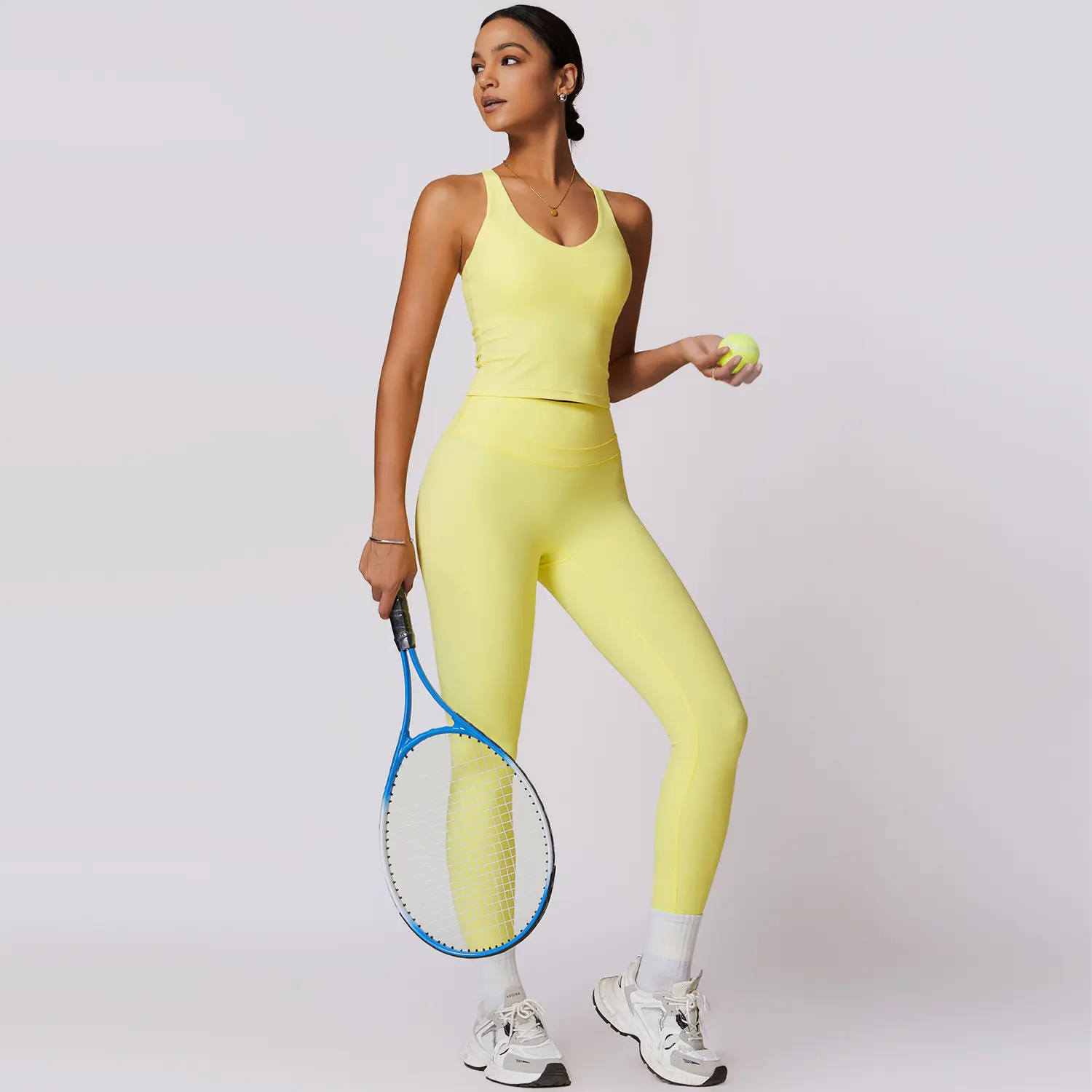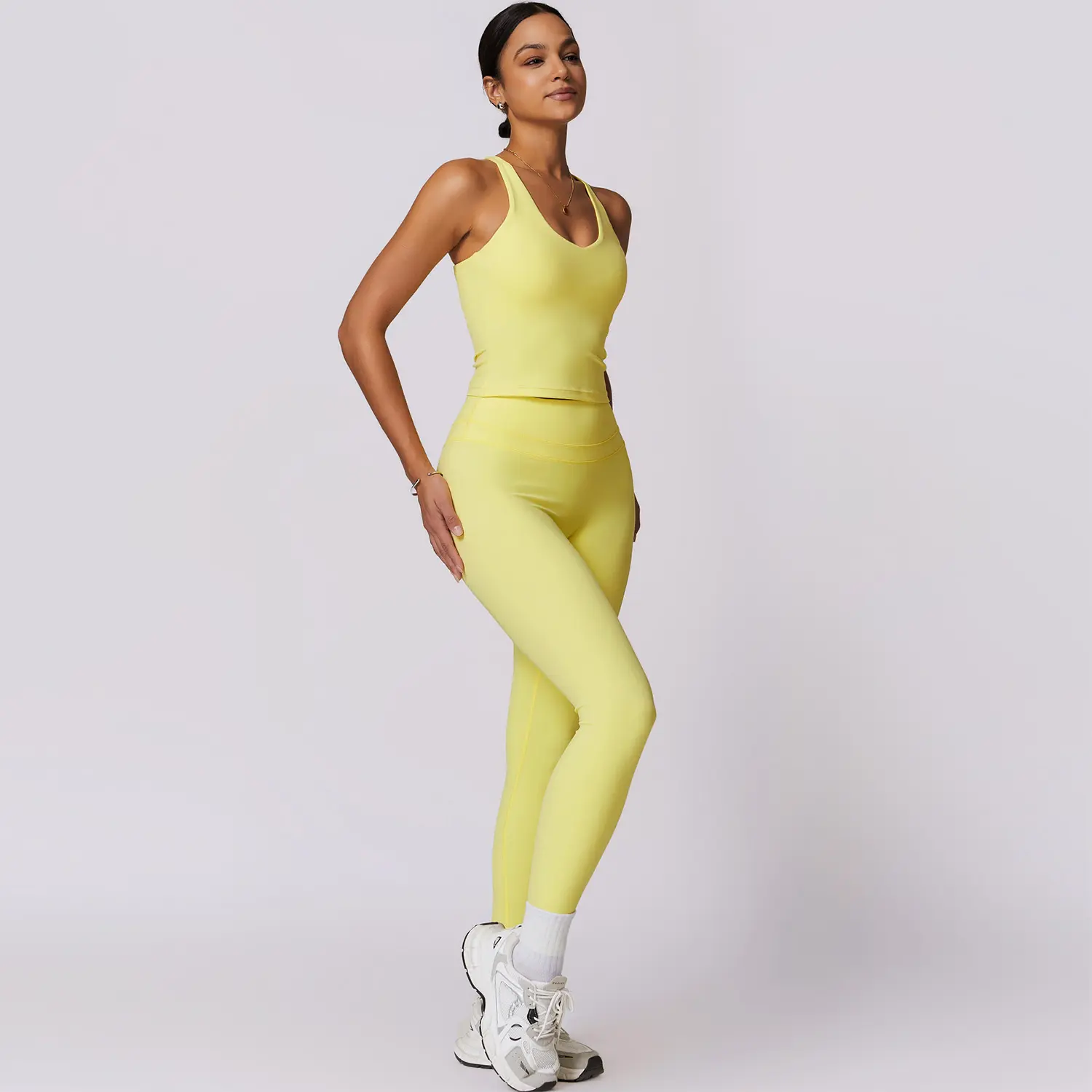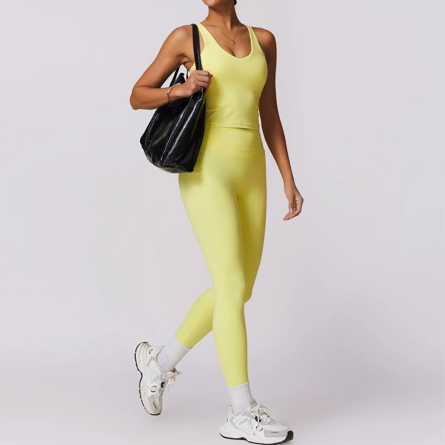 ·The image showcases the product in a stylish activewear outfit, highlighting the form-fitting silhouette and versatile design.