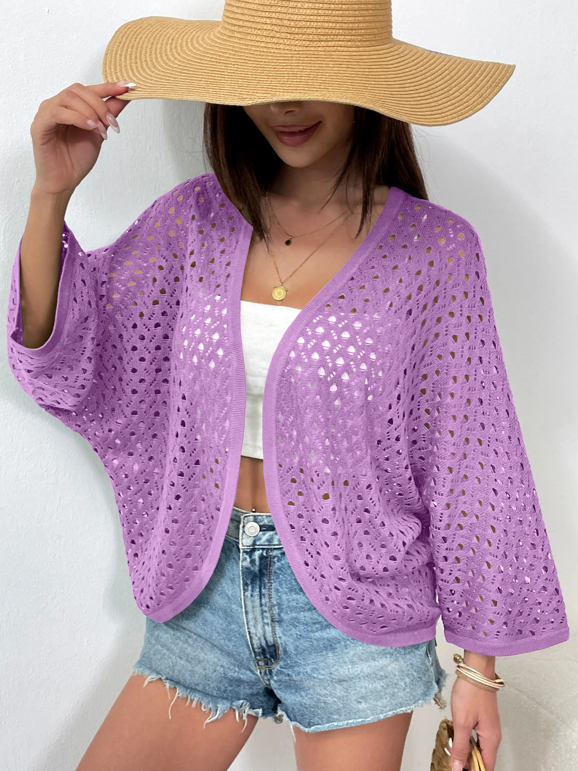 ·Lightweight Material: This 2025 summer cardigan sweater for women is made of 100% polyester knit fabric. Lightweight, breathable and stretchy, the soft hollow-out cardigan is perfect for spring/summer/early fall wear.