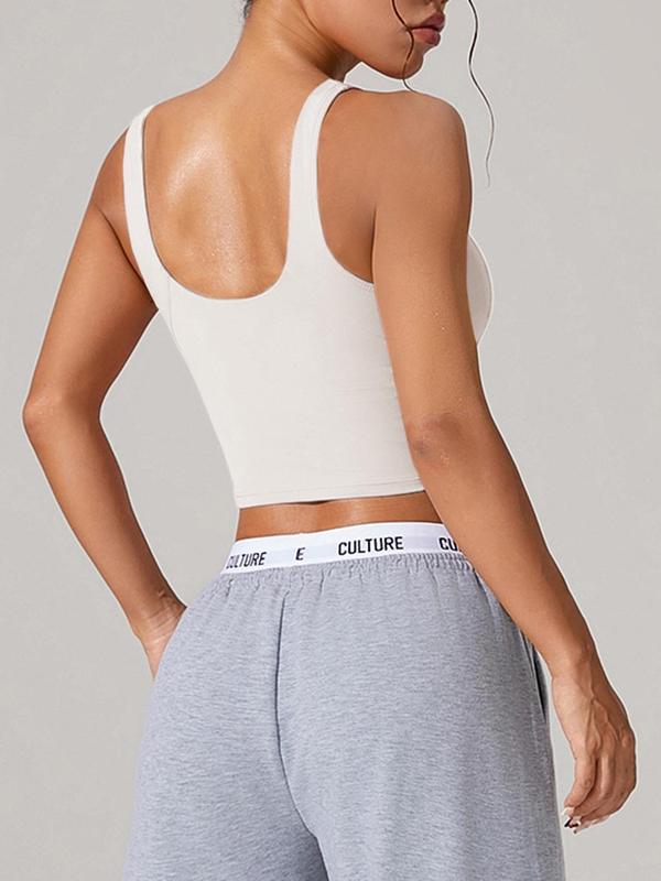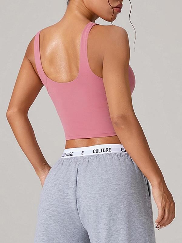 Women's Solid Color Crop Yoga Sports Bra, Breathable Comfortable Sports Bra, Ladies Sportswear for Indoor Outdoor Wear