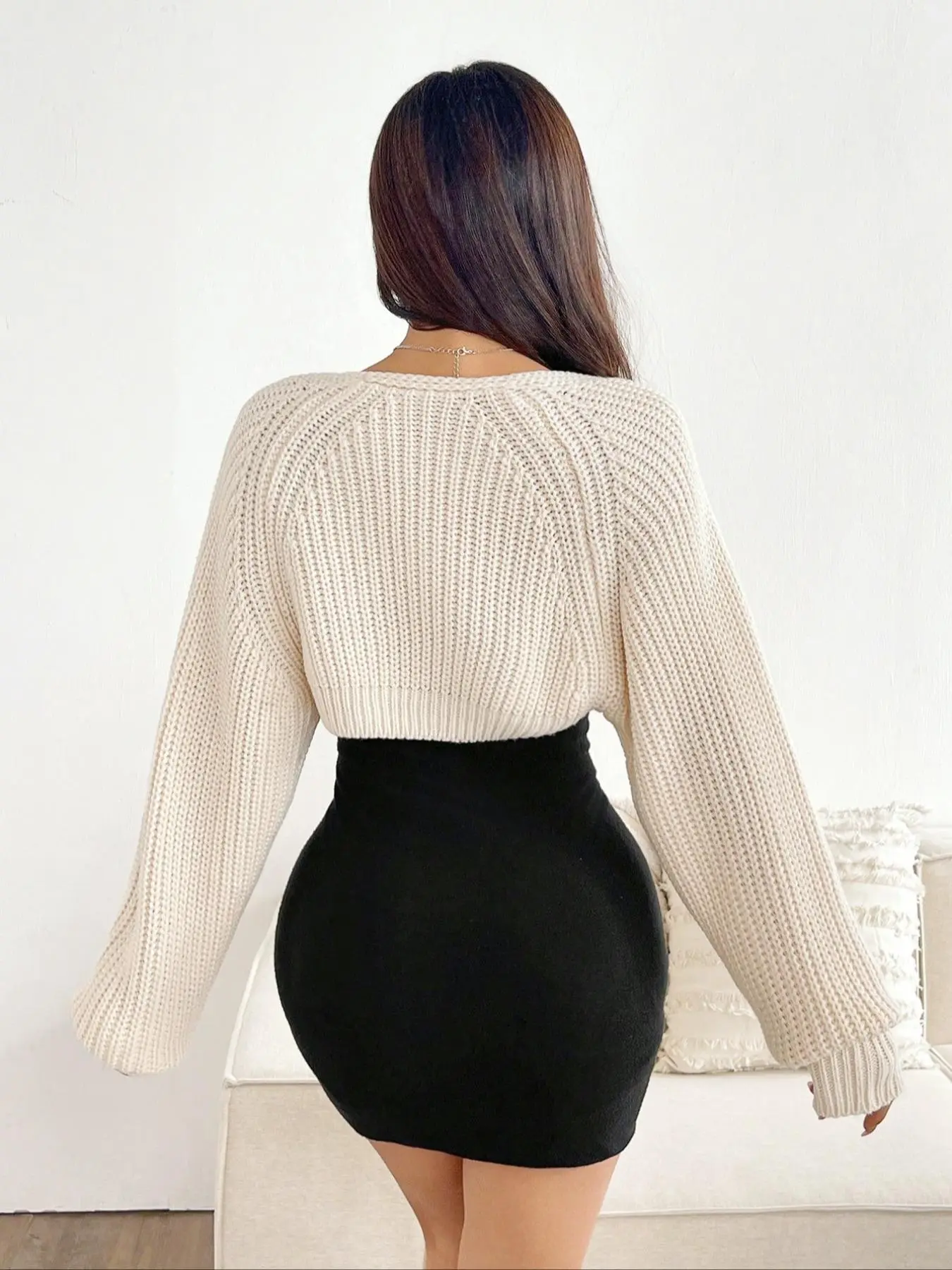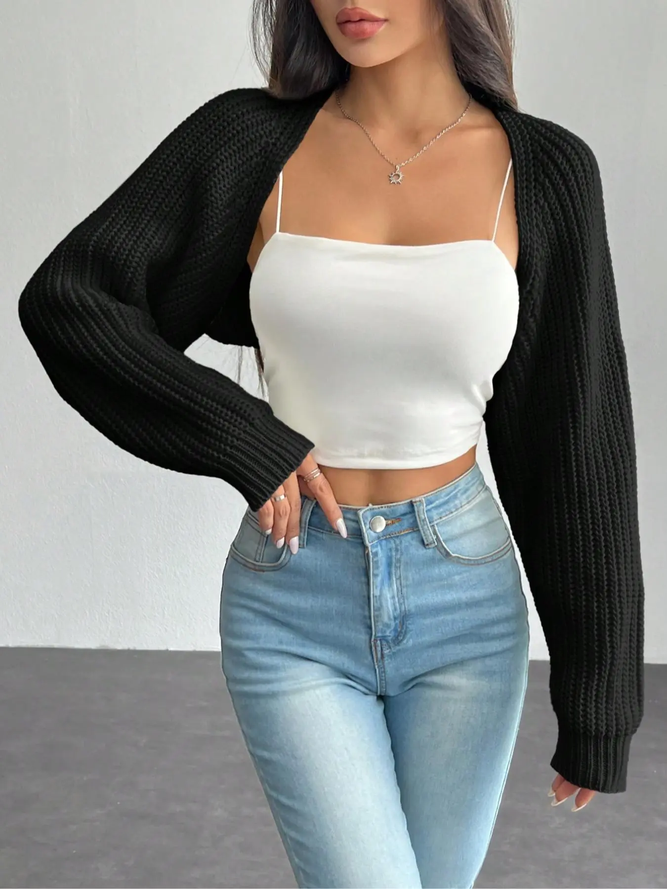 Women's Solid Color Crop Sweater Cardigan, Casual Long Sleeve Open Front Knitwear for Daily Wear, Ladies Clothes for All Seasons, Tops #WinterVibes #WinterOutfit #TikTokShopBlackFriday #TikTokShopCyberMonday #spotlightfinds
