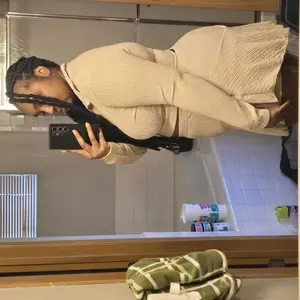 Its really soft and comfy. Its a cute outfit but I should have sized up one.