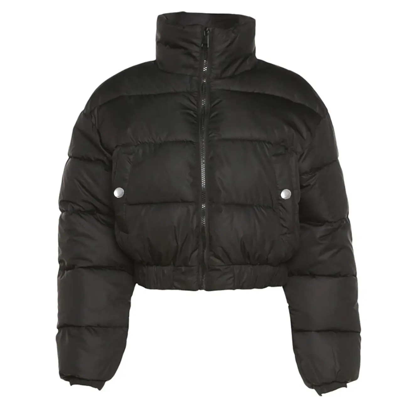 Features: Full zip up winter coat, cropped length quilted puffer jacket, stand collar warm bubble coats. Size: XS=US(2), S=US(4-6), M=US(8-10), L=US(12-14), XL=US(16-18).