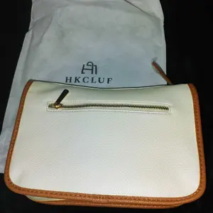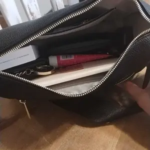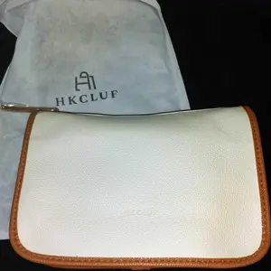 I got this today and its so nice! Perfect size for what I was looking for. It's so soft and looks classy and I didn't even break the bank. The only thing was the inside had a smell to it, kinda fishy, but only if you put your nose inside the bag.