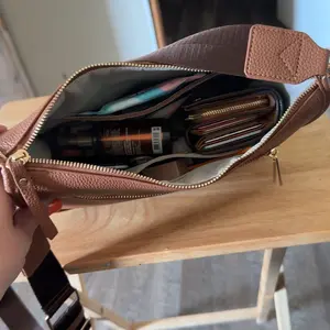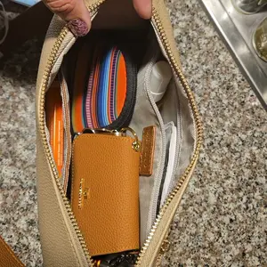 Super cute bag. This has two straps, one for over the shoulder and a crossbody strap. Plenty of space inside with a zipper and open pocket. This bag also has a back zipper. Grab today while it’s at a good price.