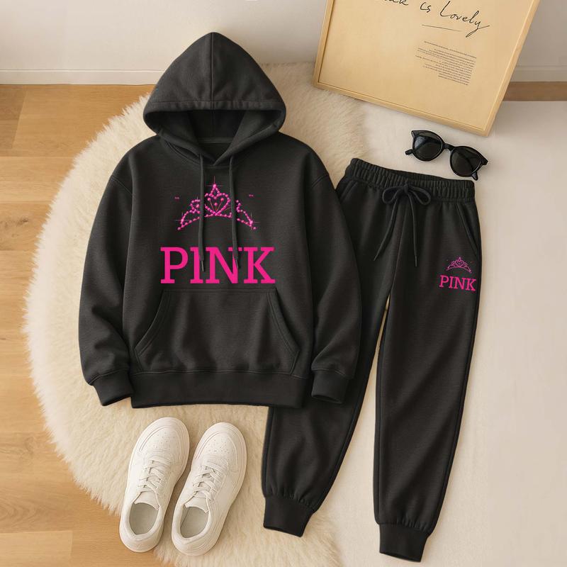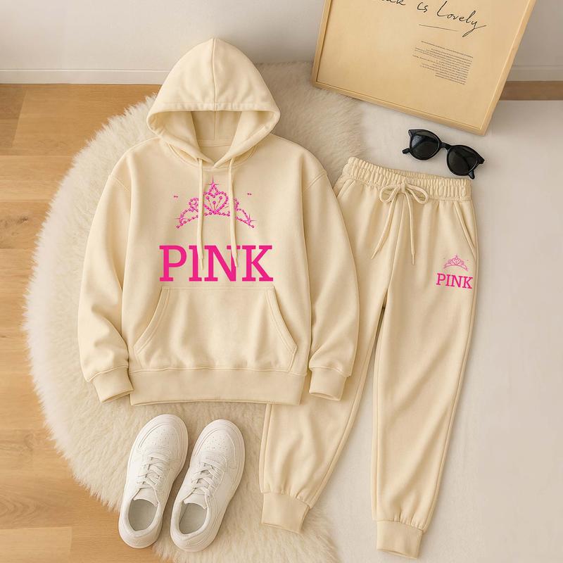 Women's Printed Hoodie & Drawstring Sweatpants Set