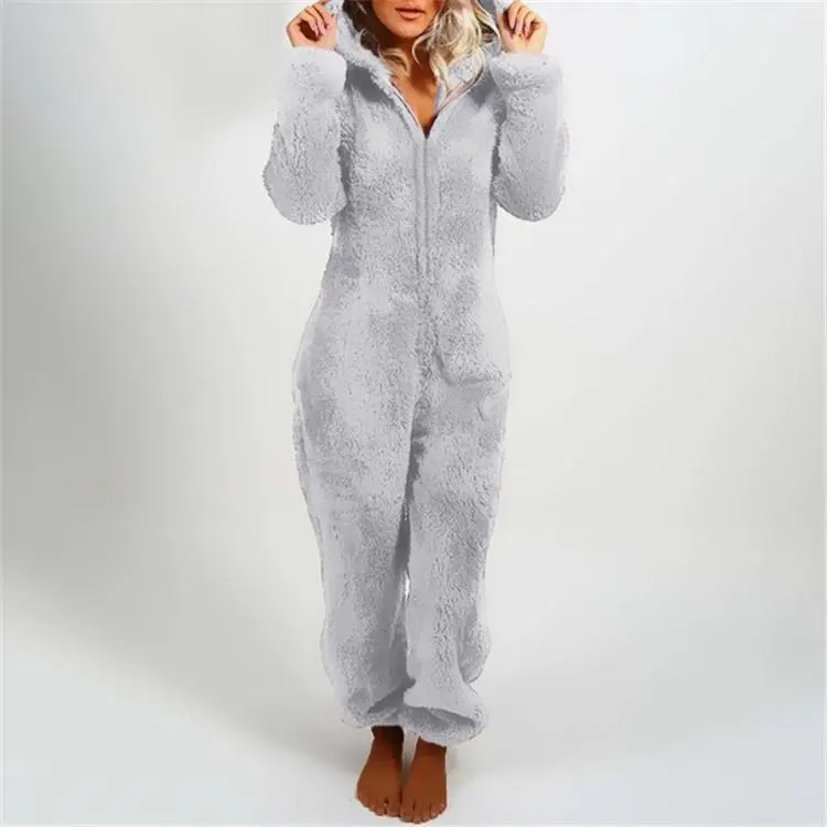 Women Plush 3D Ear Hooded Long Sleeve Jumpsuit Pajamas, Suitable For Autumn/Winter S-5XL #pajamaset #halloweenhoodieblanket #fauxfurhoodie #unisexsweatsuits #onsiepajamas #cutechristmaspajamas #plussizesweatsuit #winterpajamasset #slimjumpsuit #pinkjumpsuit #cozywinter #layeringoutfit #cozyhome #plussize #plussizefashion #bodypositivity #Holiday #Christmas #OOTD