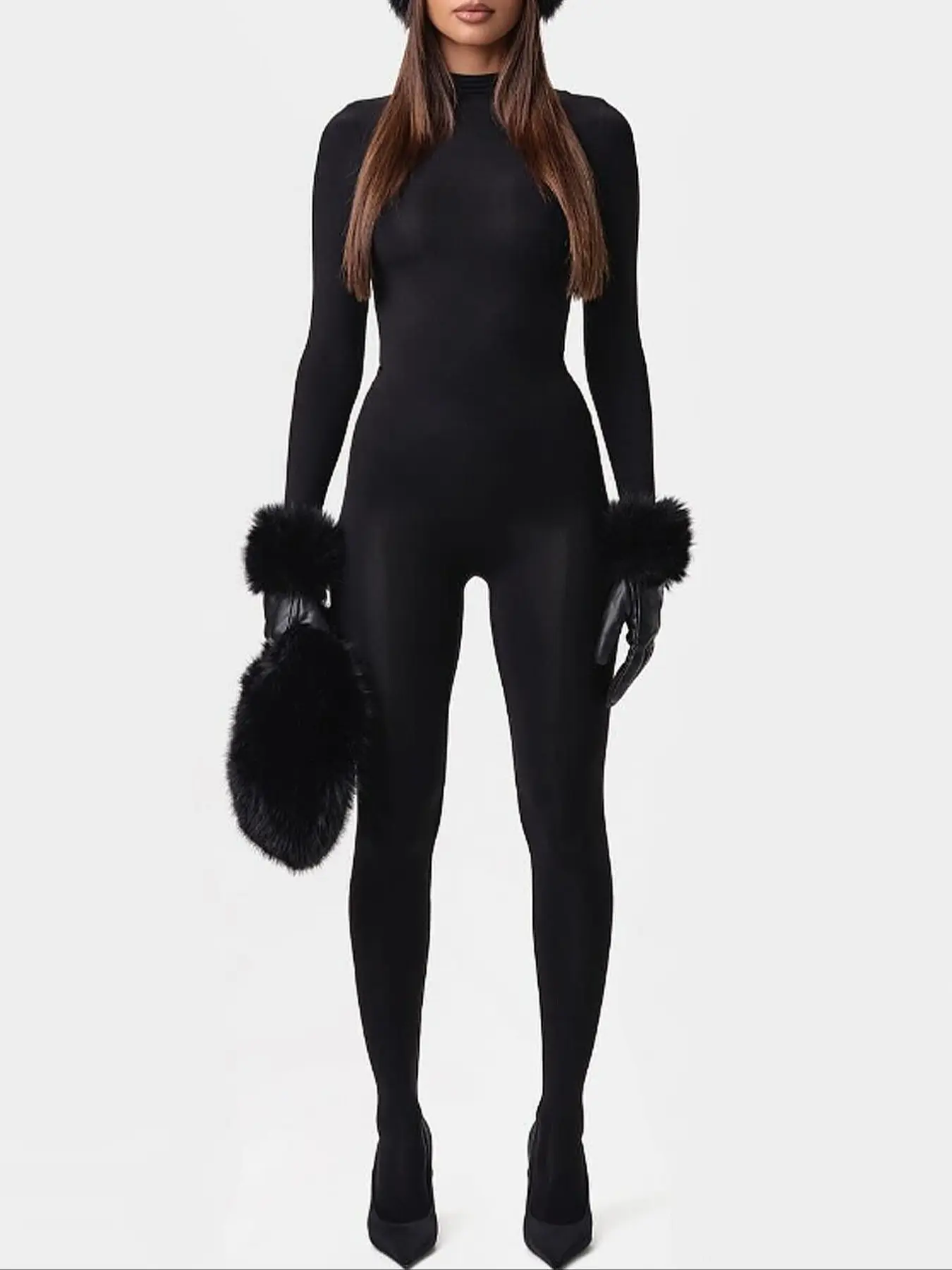 Cozy, cute, and chic—this jumpsuit has it all! Plush faux-fur cuffs + slim-fit style make it a must-have for any season. ✨ #CozyChic #FauxFurStyle #SlimFitVibes #AllSeasonFashion #ComfyAndCute