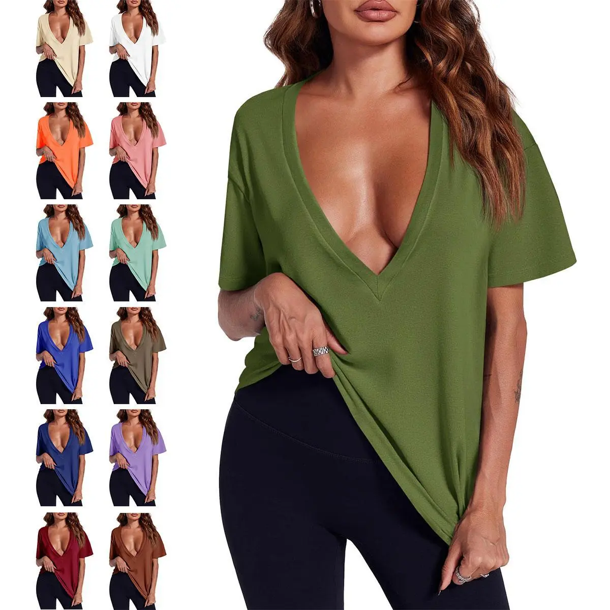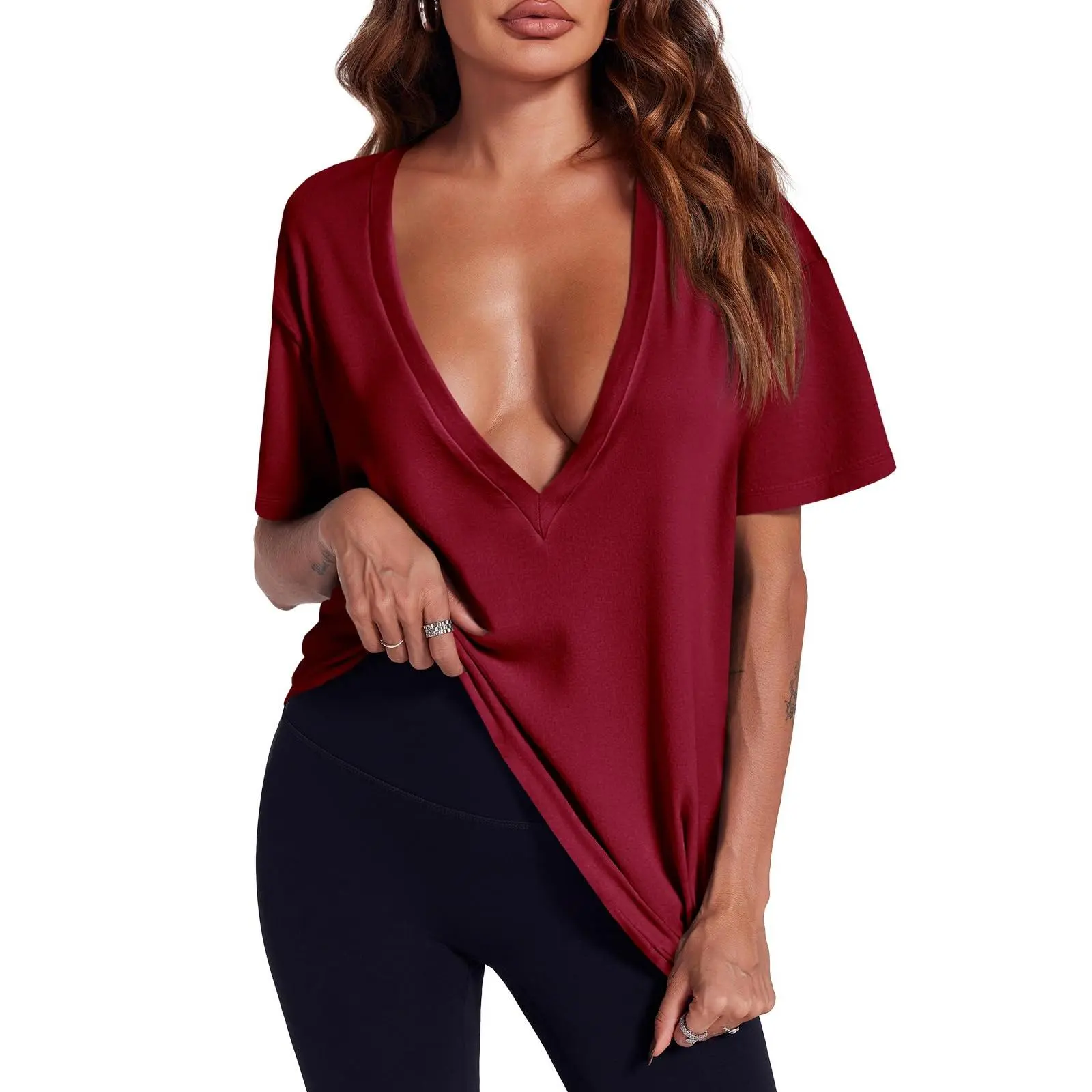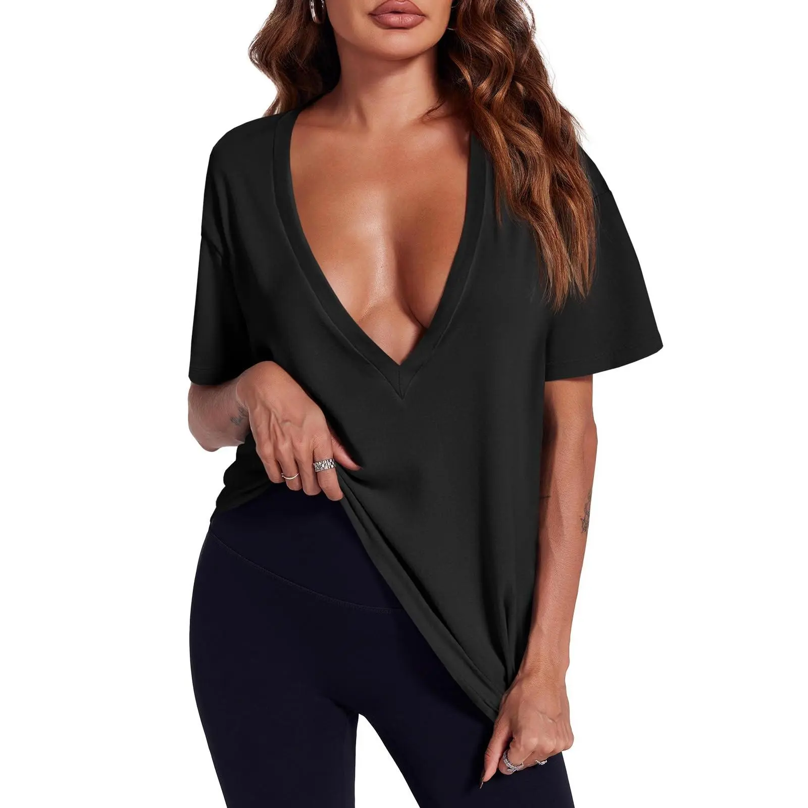 This sexy v neck t shirt is perfect with or without a bralette. Very relaxed and comfy fit .