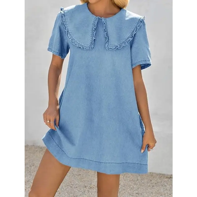 Imily Bela Women's Peter Pan Collar Babydoll Jean Dresses