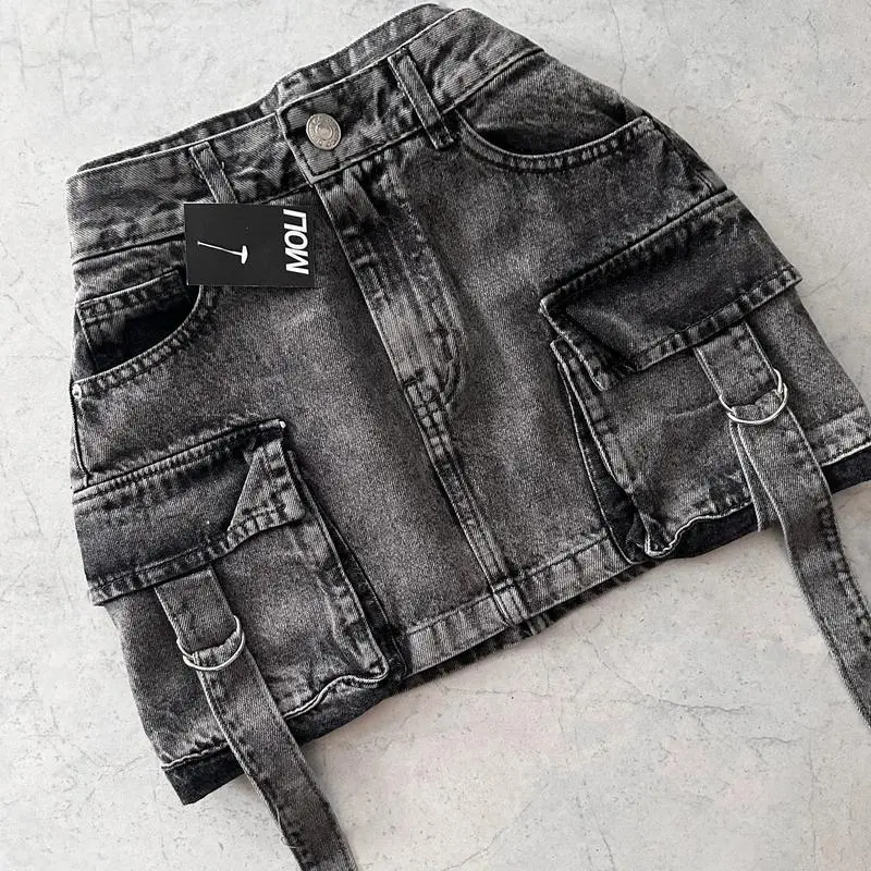 women 2 peice new fashion straps casual multiple pockets denim skirt  goth womens versatile strap streetwear  Womenswear sets Clothes Button Jeans Seamless Suits Gamis Fitted Short Sleeveless
