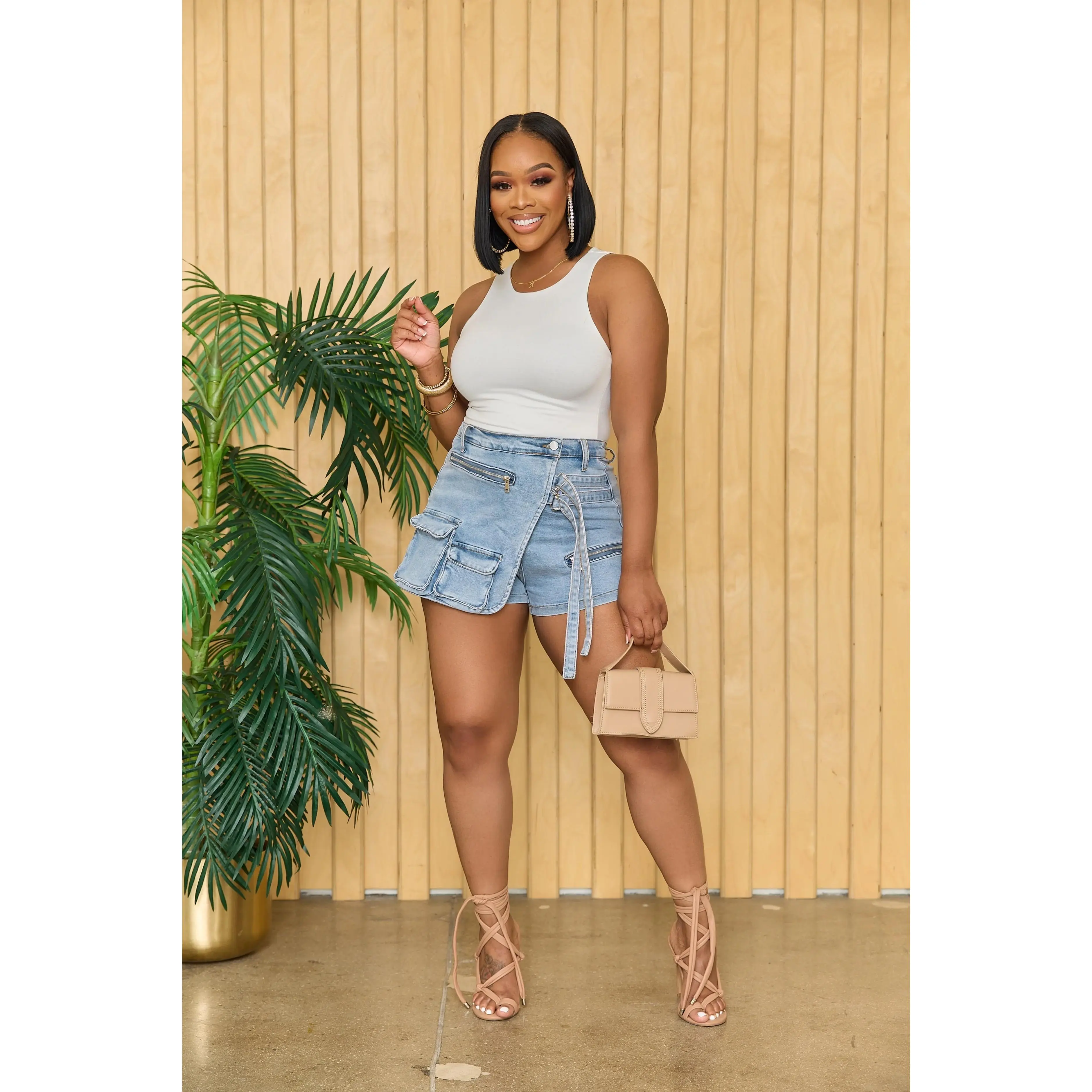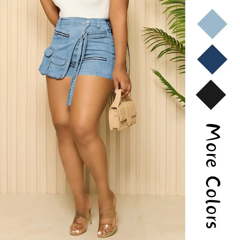 ·DESIGN: Our High Waisted Jean Skort With A Unique Irregular Design And Utility Flap Pockets, Adds A Fashion-forward Edge. Showcase Your Individuality Effortlessly In This Modern, Meticulously Tailored Piece That Radiates Artistic Flair, Elevating Your Fashion Sense.