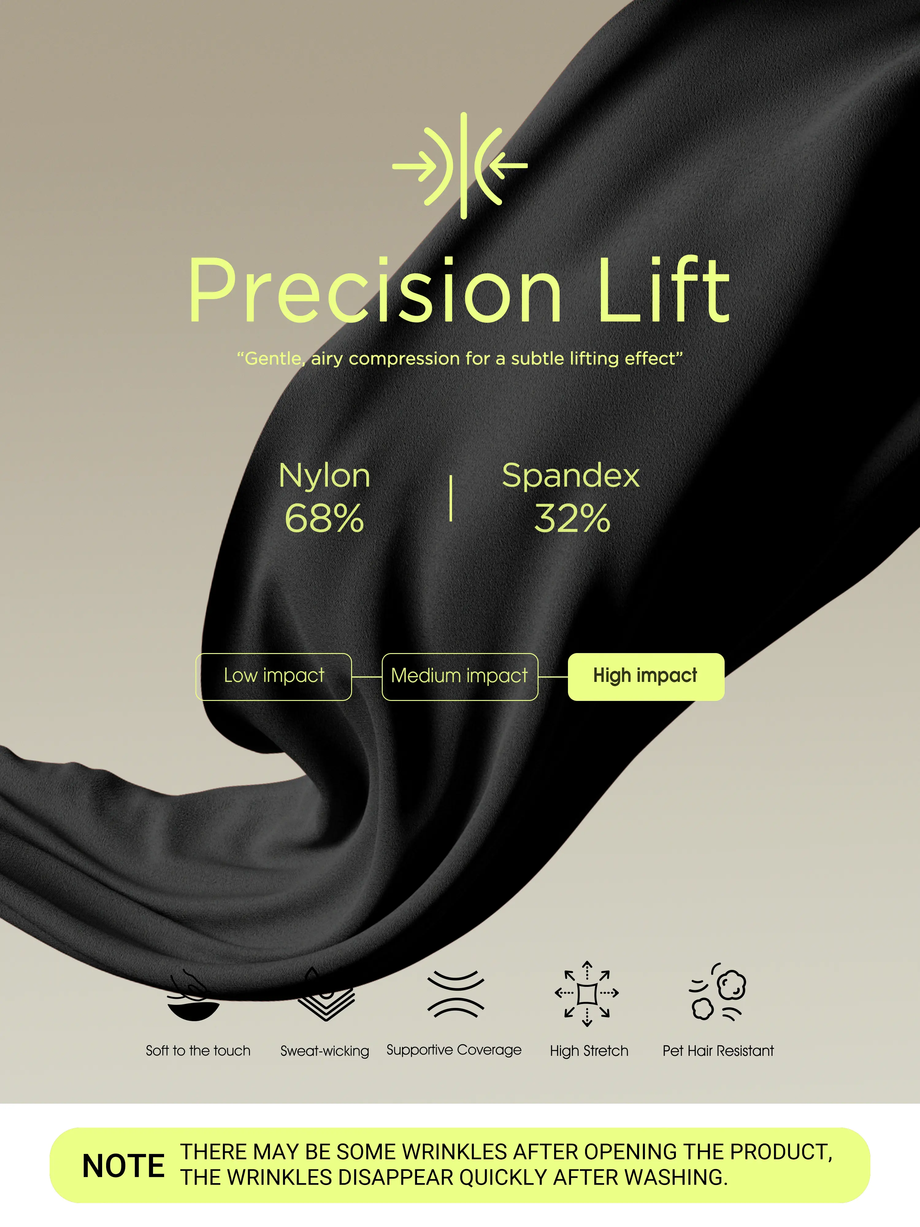 ·High compressive yet lightweight, brushed feel and soft touch