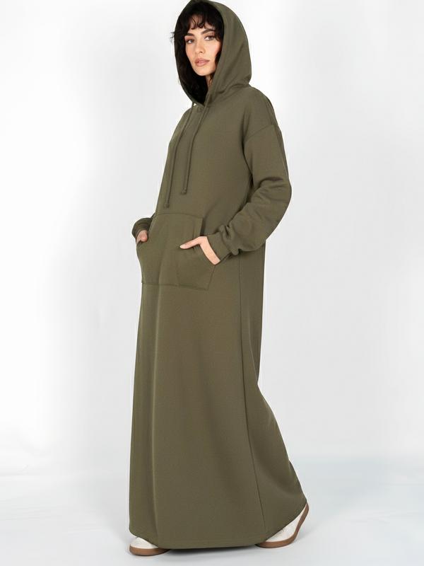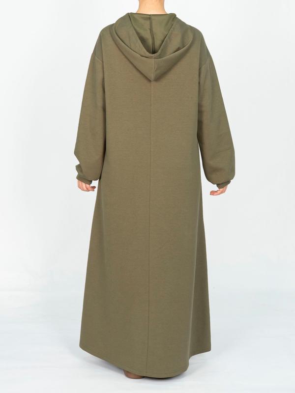 This hooded sweatshirt abaya blends comfort and style for a modern, relaxed look.