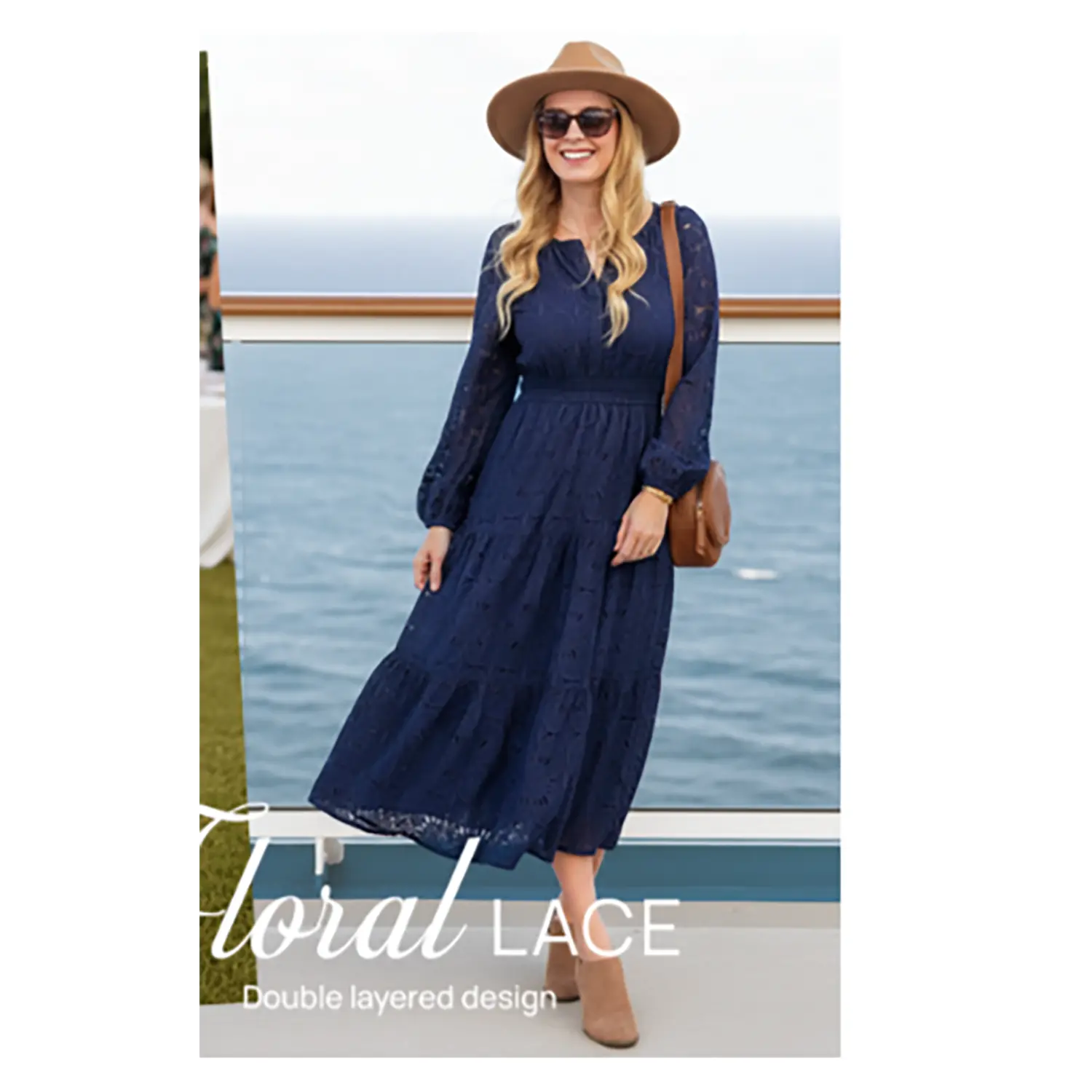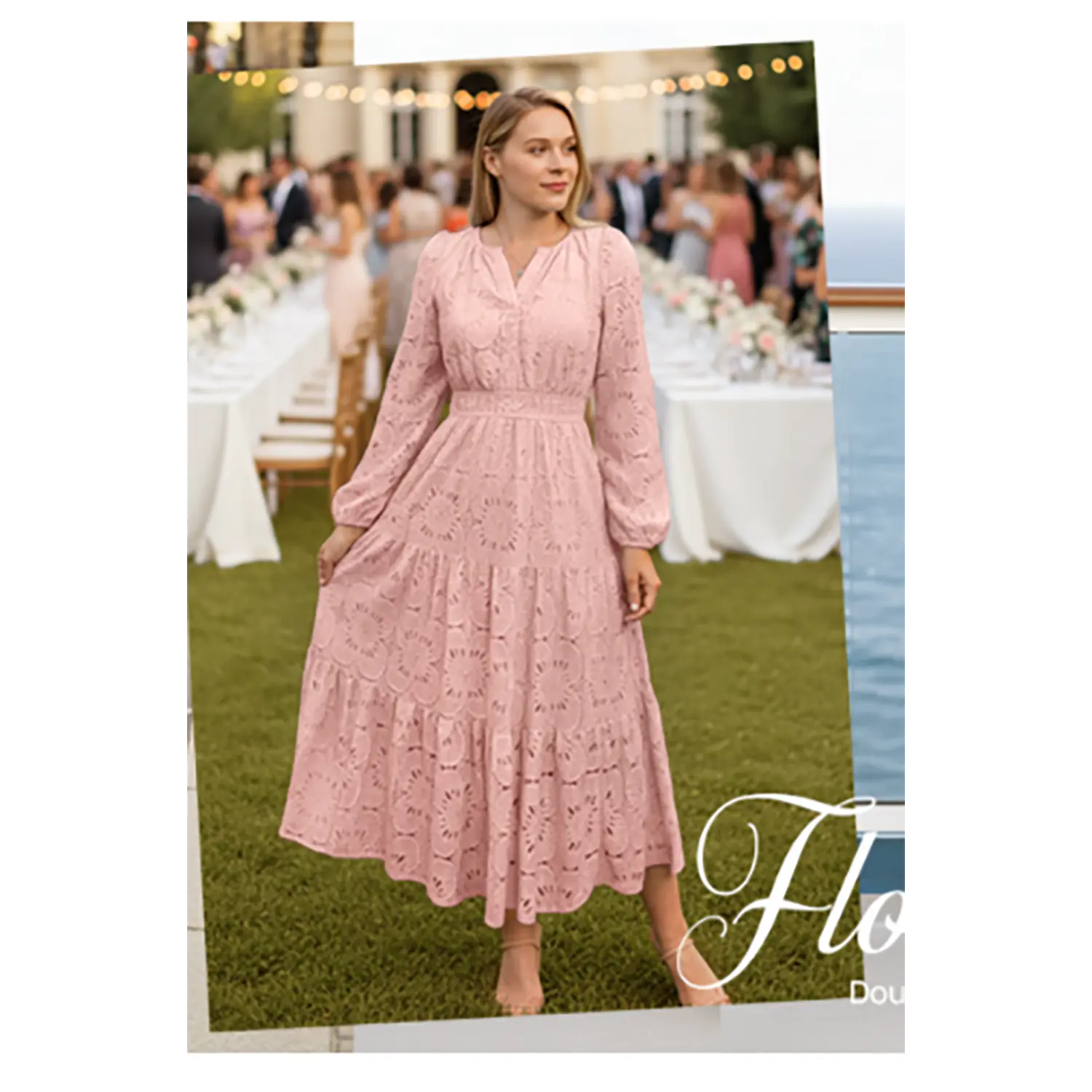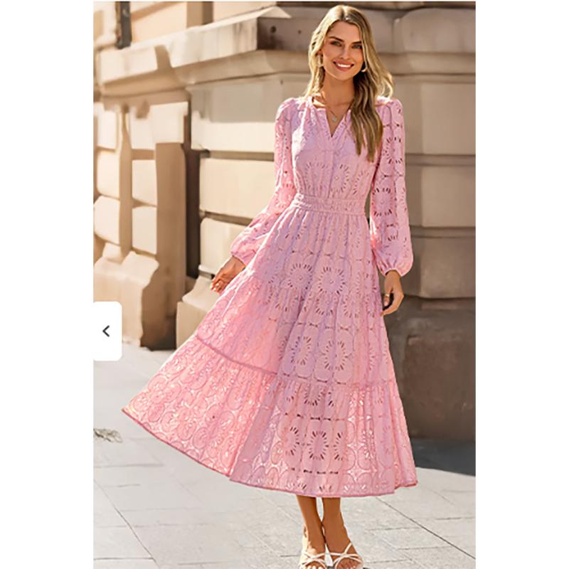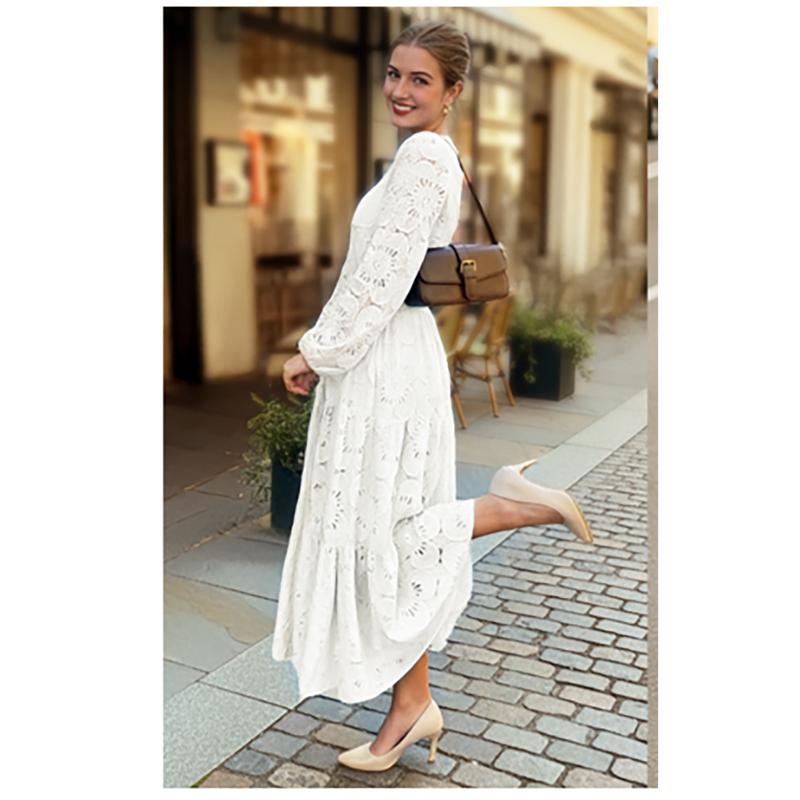 ·Size Tips: S=US 4-6, M=8-10, L=12-14, XL=16-18. The elegant women's maxi dress is crafted from premium lightweight lace, featuring delicate floral eyelet detailing. The soft, breathable fabric offers exceptional comfort and a skin-friendly wearing experience
