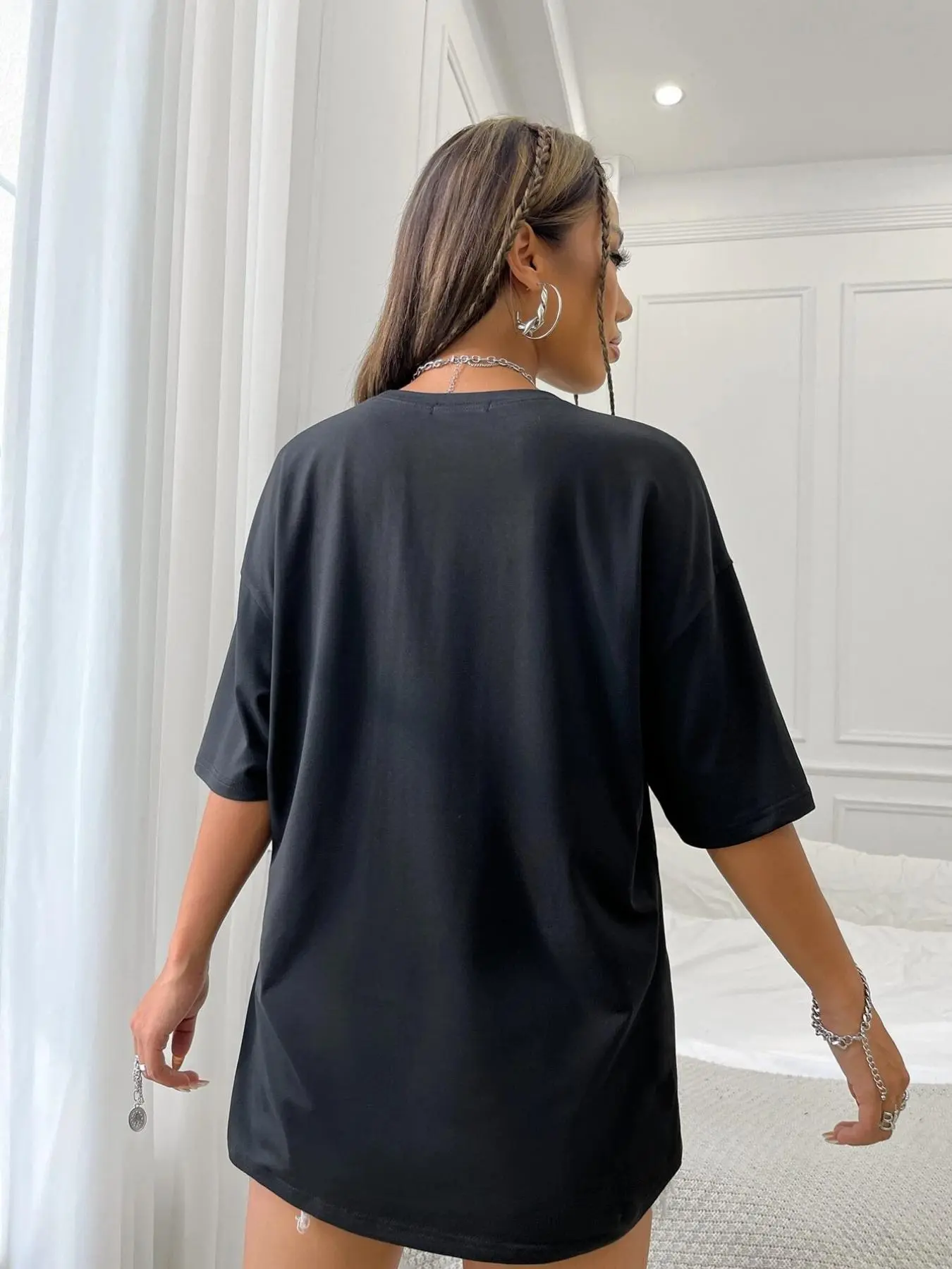 ·【Street Style Statement】: Embrace the Y2K trend with this casual yet chic drop shoulder tee, featuring a bold letter print that adds a touch of street style flair to your everyday look.