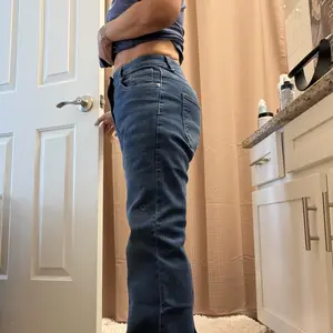 I like the jeans. Gives a little shape to my booty. I don’t have the heart shape and round booty like the models. I’m 411”-5’0”, 109 lbs. still a little too long but great stretch. The color is off though. I’m not impressed with the color.