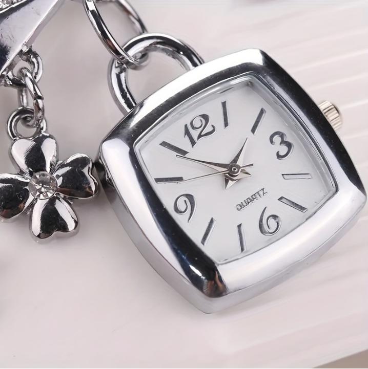 Designed for women, this watch is perfect for dress occasions. The chain bracelet and flower pendant add a touch of sophistication. It is a versatile piece that can complement any outfit. Whether for a special occasion or everyday wear, this watch is a great addition to any collection.