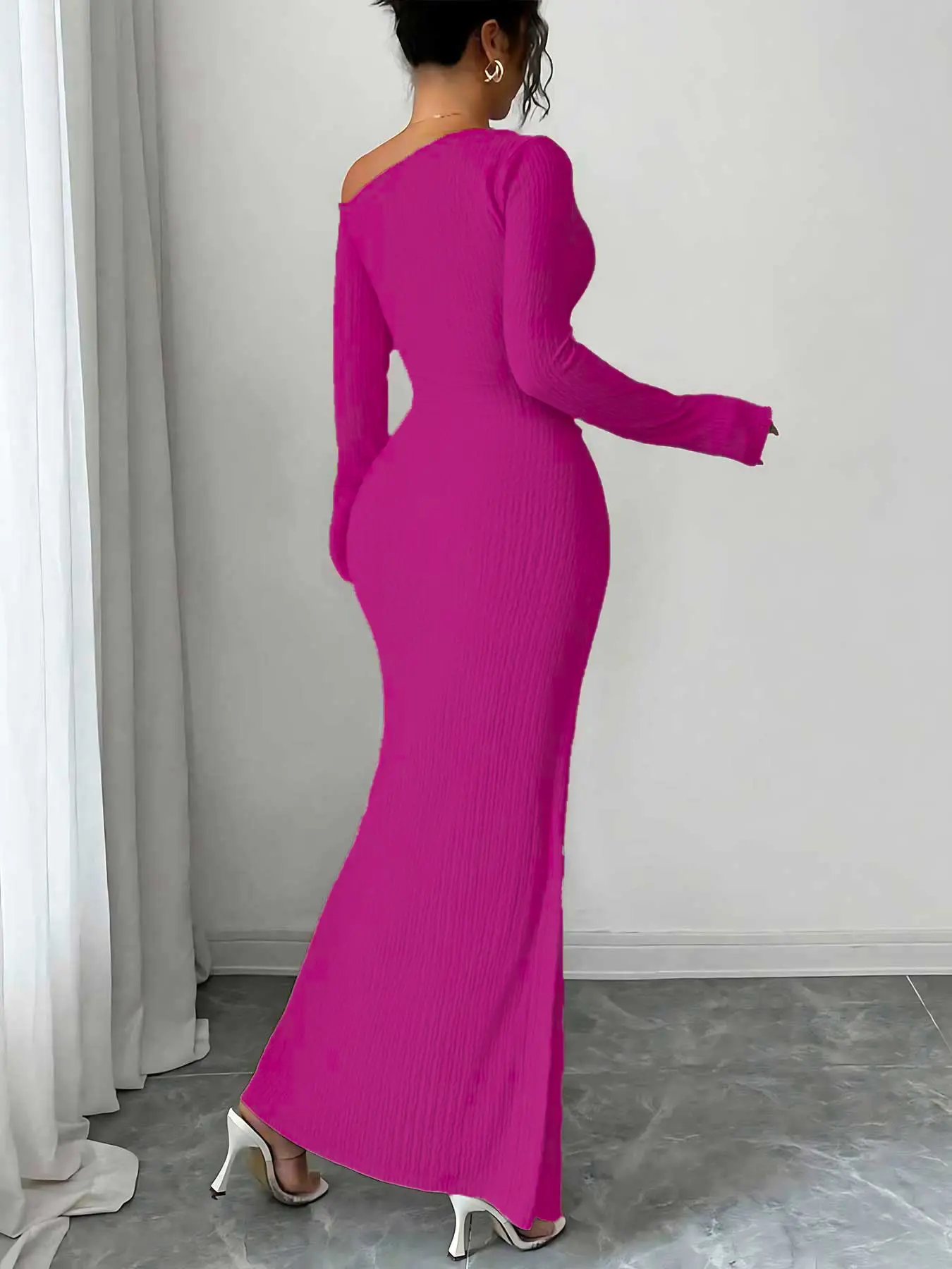 5. Women's Elegant Chic Asymmetric Neckline Dress, Plain Color, Twist Texture, Tight Fit, Party Gown, Commuter Style, All Seasons