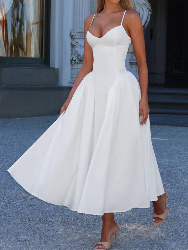 5. Pure Color Elegant Sleeveless Long Dress, Waist Cinched Design, Fitted Style, Plain Pattern, Perfect for Various Occasions