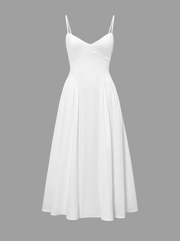 Pure Color Elegant Sleeveless Long Dress, Waist Cinched Design, Fitted Style, Plain Pattern, Perfect for Various Occasions