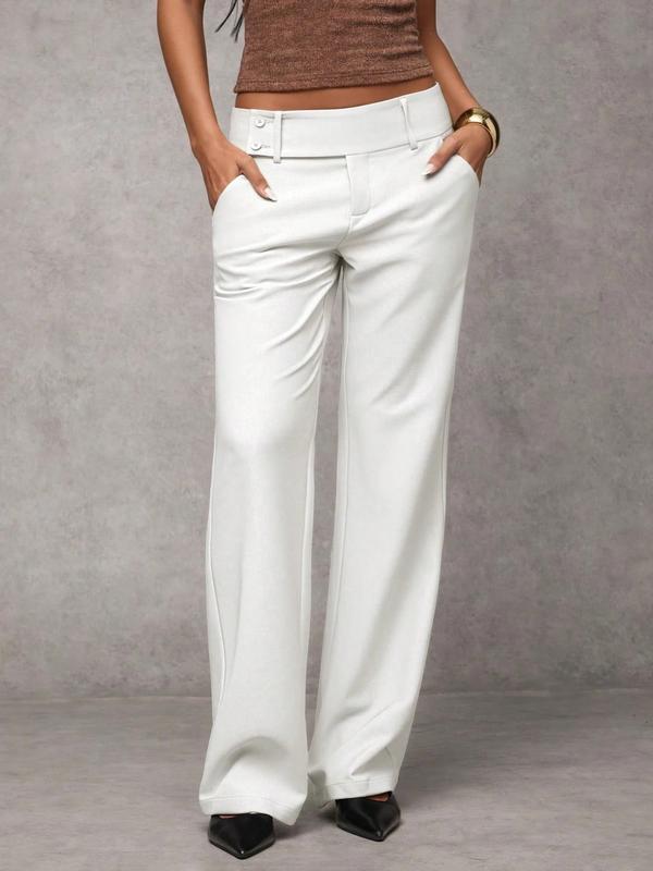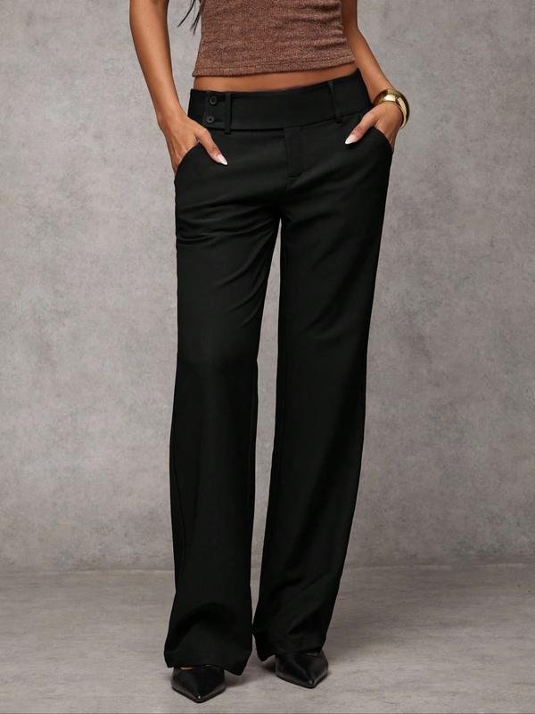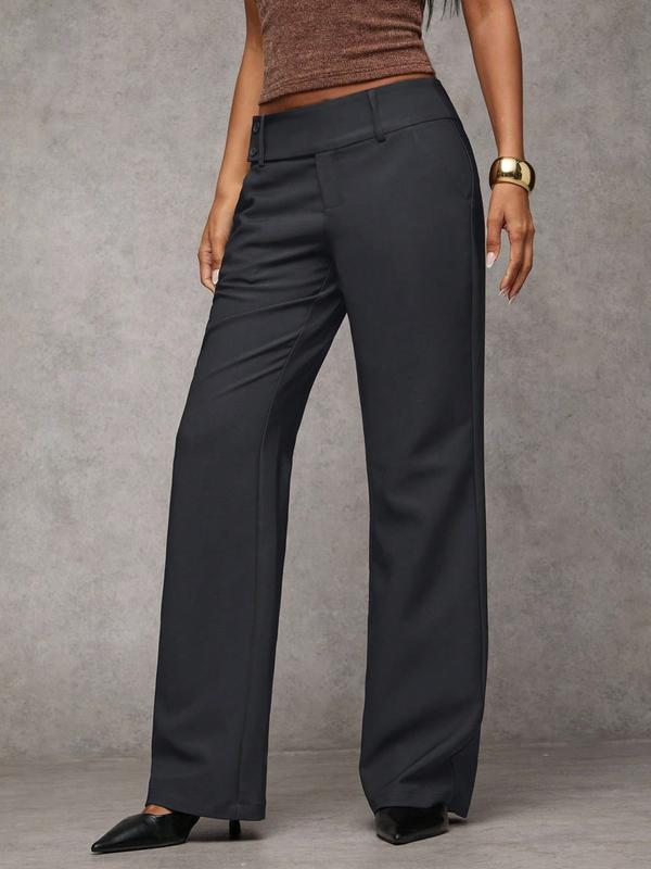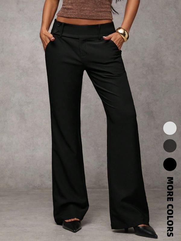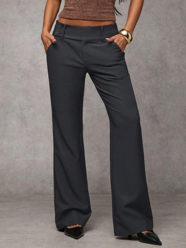 Women's Plain Pocket Elegant Casual Flare Pants, Business Casual Women's Clothing, All-Season Ladies' Apparel, Stylish & Comfortable #lowrisepants #plussizefallfashion #widelegjumpsuit #highwaistpantsforwomen #womenspantssuit #widelegtrousers #womensfashionflats #plussizeworkoutclothes #blackflarejeans #widelegpant