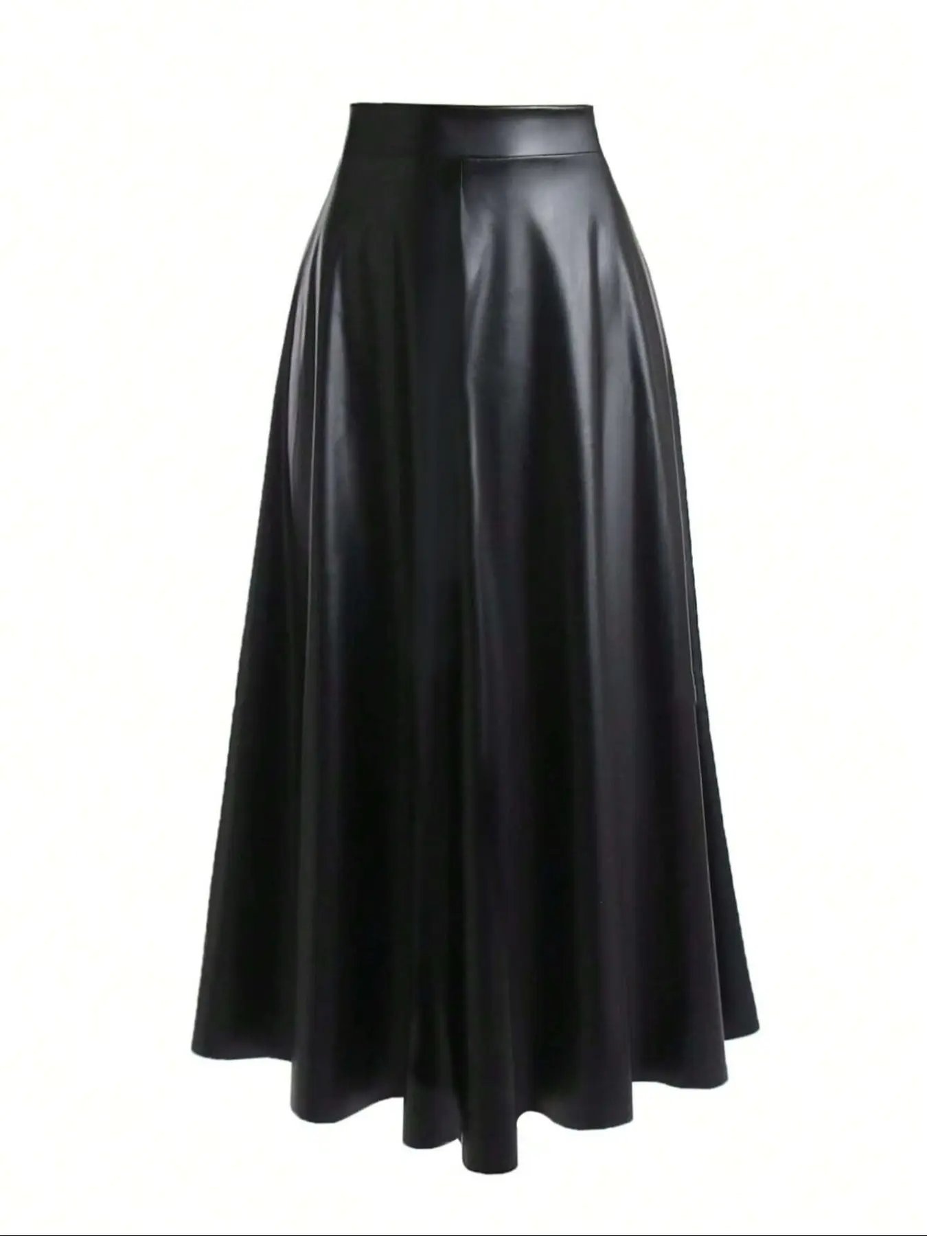 Women's Elegant Fall Winter PU A-Line Skirt, Flared Skirt Design, Loose Fit Long Half Skirt, Plain Pattern Slim-Fitting, Moderate Fabric, Ladies FashionWomen's Elegant Fall Winter PU A-Line Skirt, Flared Skirt Design, Loose Fit Long Half Skirt, Plain Pattern Slim-Fitting, Moderate Fabric, Ladies Fashion