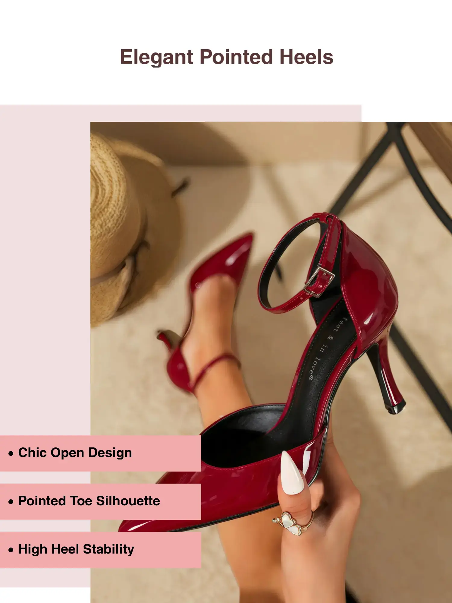 Charol vino + punta fina + strap al tobillo = elegancia total. Disponibles en más colores #ZapatillasElegantes #TaconesDeModa #tiktokshopblackfriday  #OutfitIdeas #tiktokshopblackfridaysale