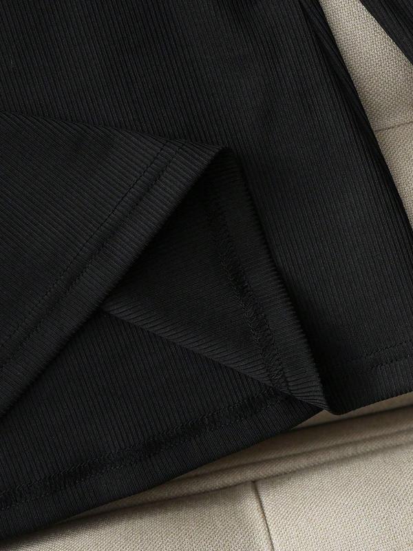 【Two-Piece Set】: This outfit features a coordinated knit top and skirt, providing a unified look for any occasion.