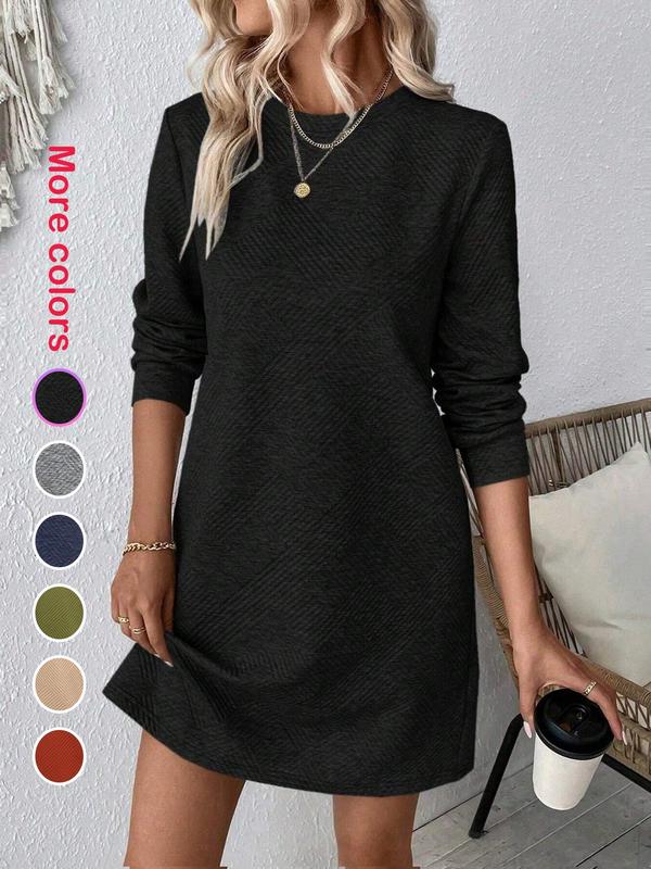 5. Women's Casual Elegant Long Sleeve Dress, Spring & Fall Season, Christmas Style, Fitted Plain Pattern, Perfect for Daily Wear