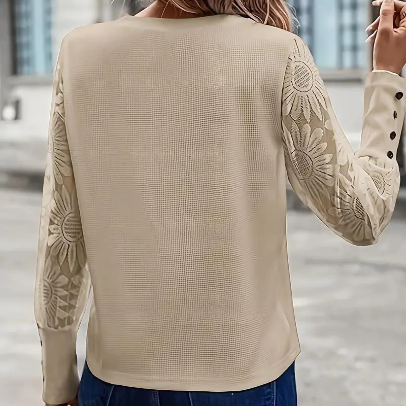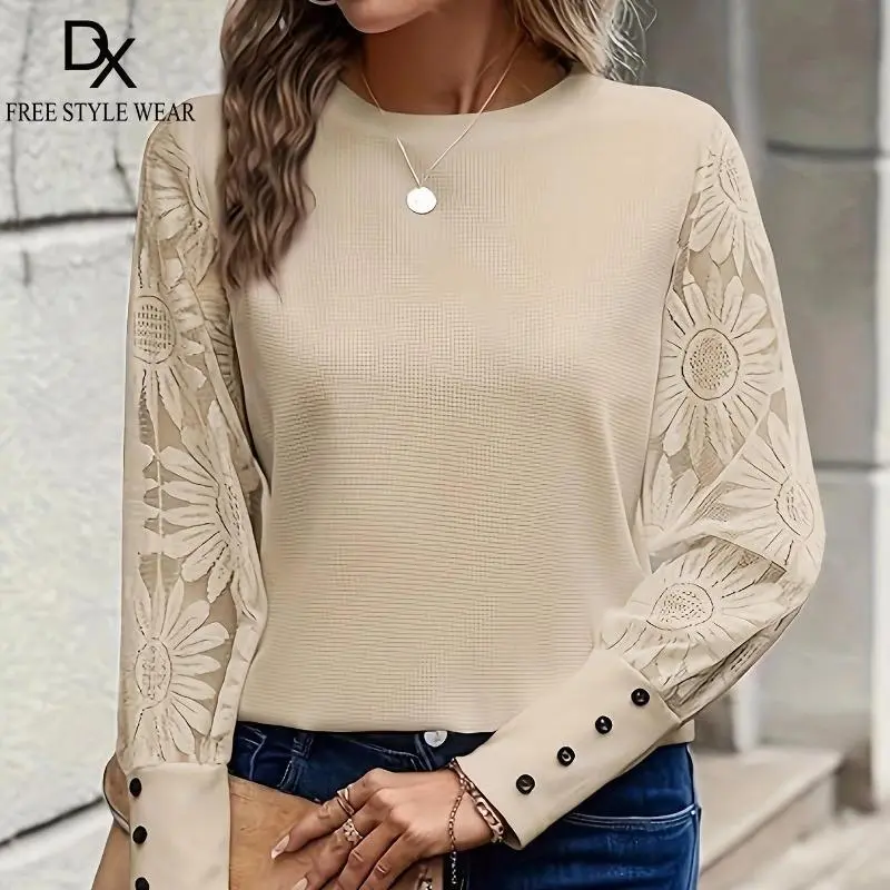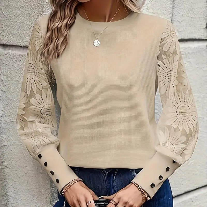 This blouse is the perfect blend of comfort and sophistication, making it a must-have for your autumn wardrobe. Its unique lantern sleeves and crochet lace details add a touch of elegance, while the loose-fit design ensures all-day comfort. Whether you're dressing up or keeping it casual, this top will keep you stylish and cozy throughout the season.