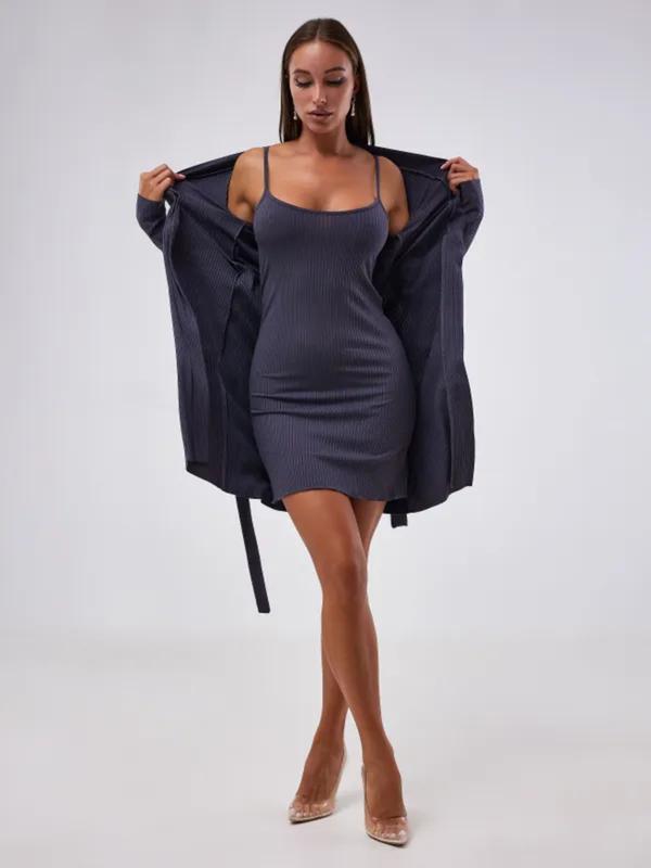 5. Women's Elegant Minimalist Knit Cami Dress Set, Soft Comfortable Ribbed Sleepwear for Home Use, Perfect for Everyday Wear