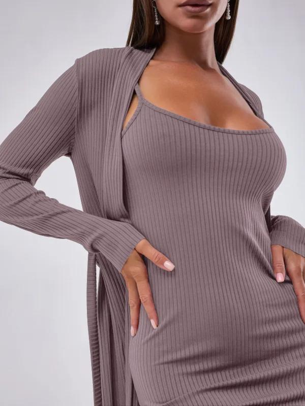 Women's Elegant Minimalist Knit Cami Dress Set, Soft Comfortable Ribbed Sleepwear for Home Use, Perfect for Everyday Wear