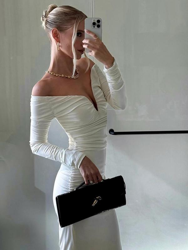 Women's Elegant One-Shoulder U Neck Dress, Thin Fabric Tight-Fitting Fall & Winter Fashion, Stylish Kint Design for Ladies, Formal Wear