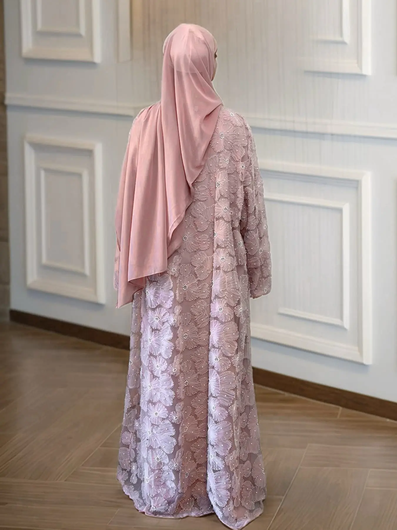 Women's Elegant Pearl Floral Beaded Abaya Hijab Set