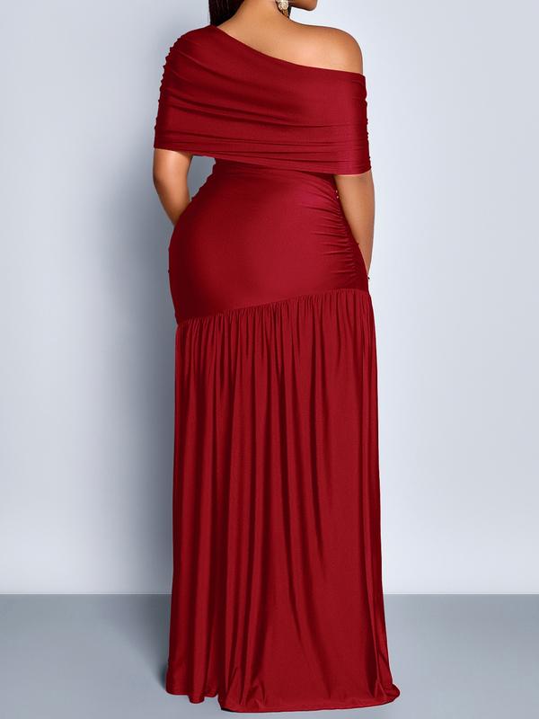 ใ€Asymmetric Shoulderใ€‘: The unique slanted shoulder design distinguishes this dress, offering a contemporary twist on traditional silhouettes.