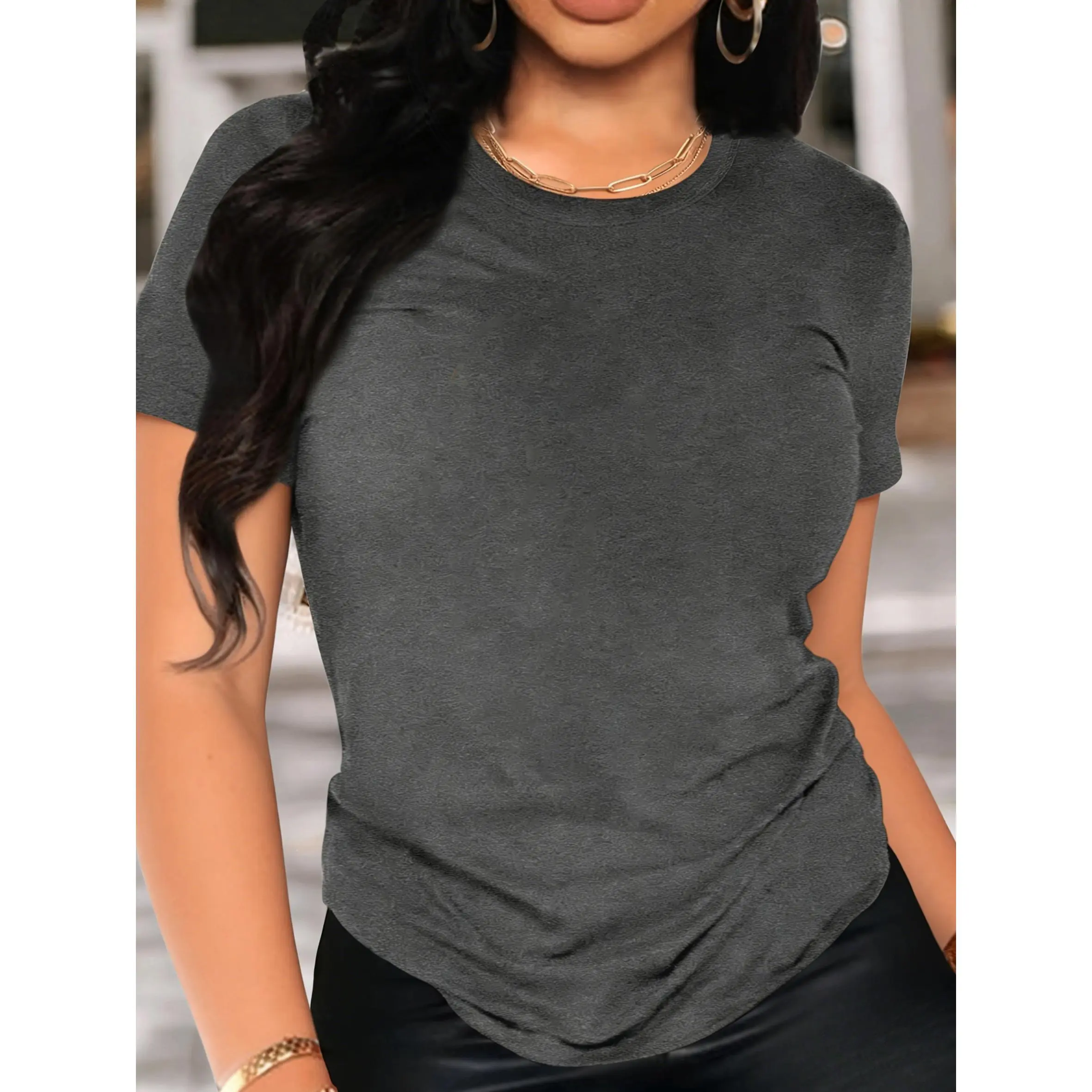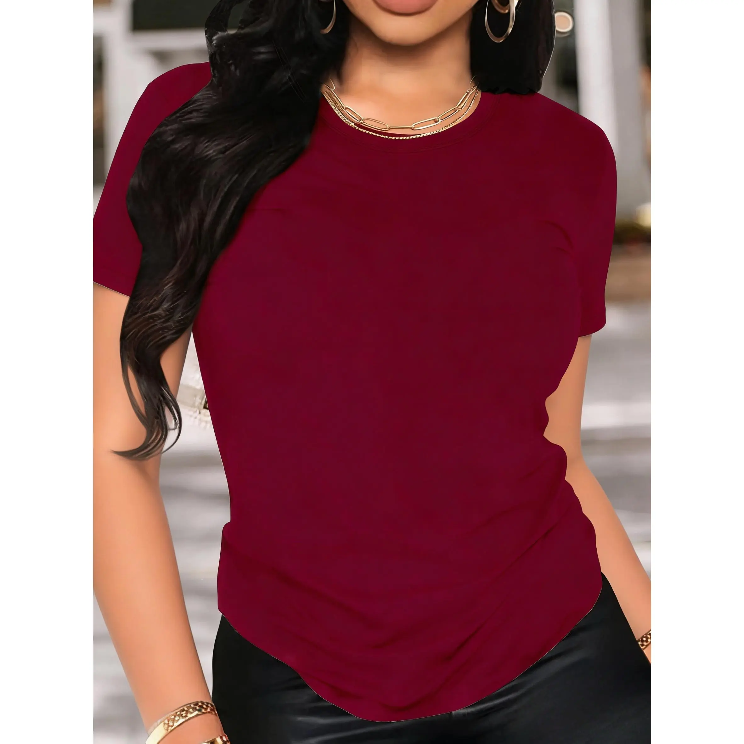 Women's Elegant Solid Color Basic Short Sleeve Pullover - Loose Crew Neck OOTD
