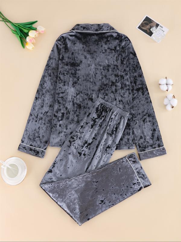 Women's Elegant Winter Pajama Set, Fitted Long Sleeve Button-Up Top & Warm Pants, Comfortable Loungewear for Cold Weather
