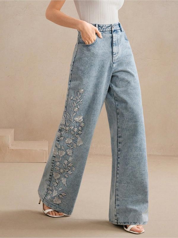 Women's Embroidered Personalized Washable Straight-Leg Denim Jeans, Elastic Comfortable Versatile Jeans for Everyday Wear #bluejeans #newyearnewdenim #vintagedenimjeans #tallgirljeans #adjustablejeans #pacsunlowrisejeans #coachdenim #bestjeans #asymmetricaldenimjacket #flatteringjeans