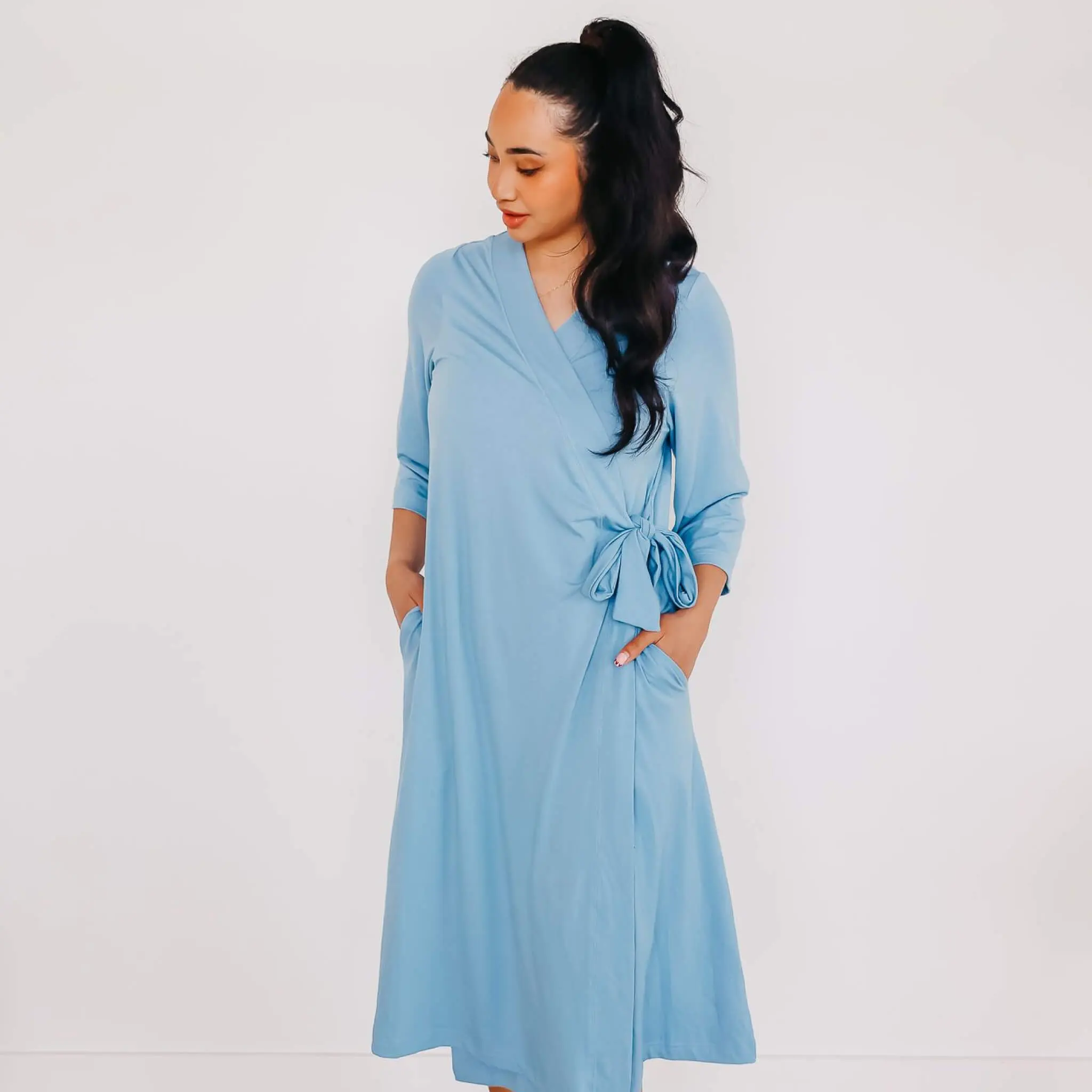 Now mom can enjoy the same buttery soft fabric that has made our swaddles a fan favorite. Featuring flowy, three-quarter sleeves, it closes with an internal tie placed a little higher up to accommodate growing bumps. (Though we know you’ll still love it once baby arrives.) You can even match with little ones for a fun mommy-and-me look.