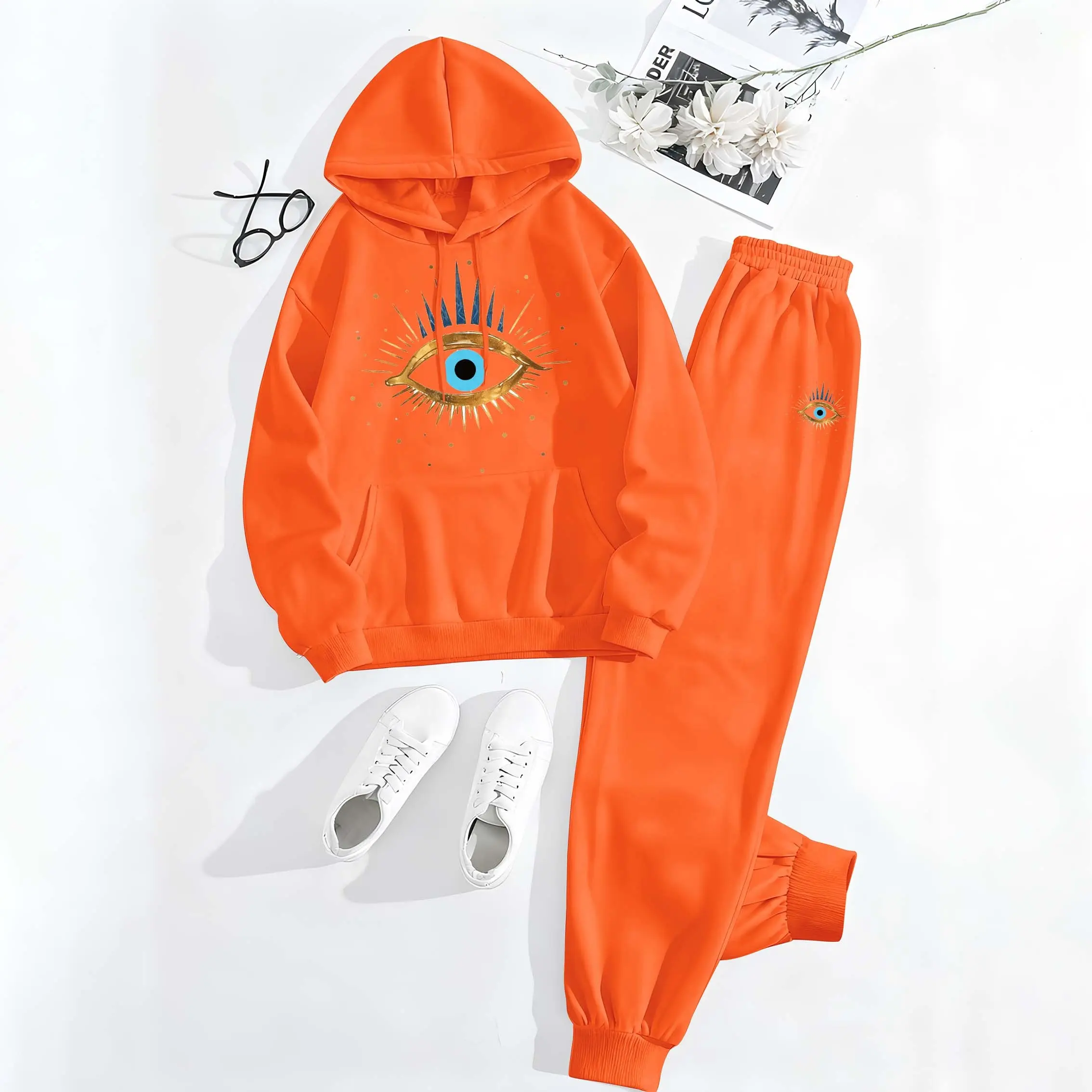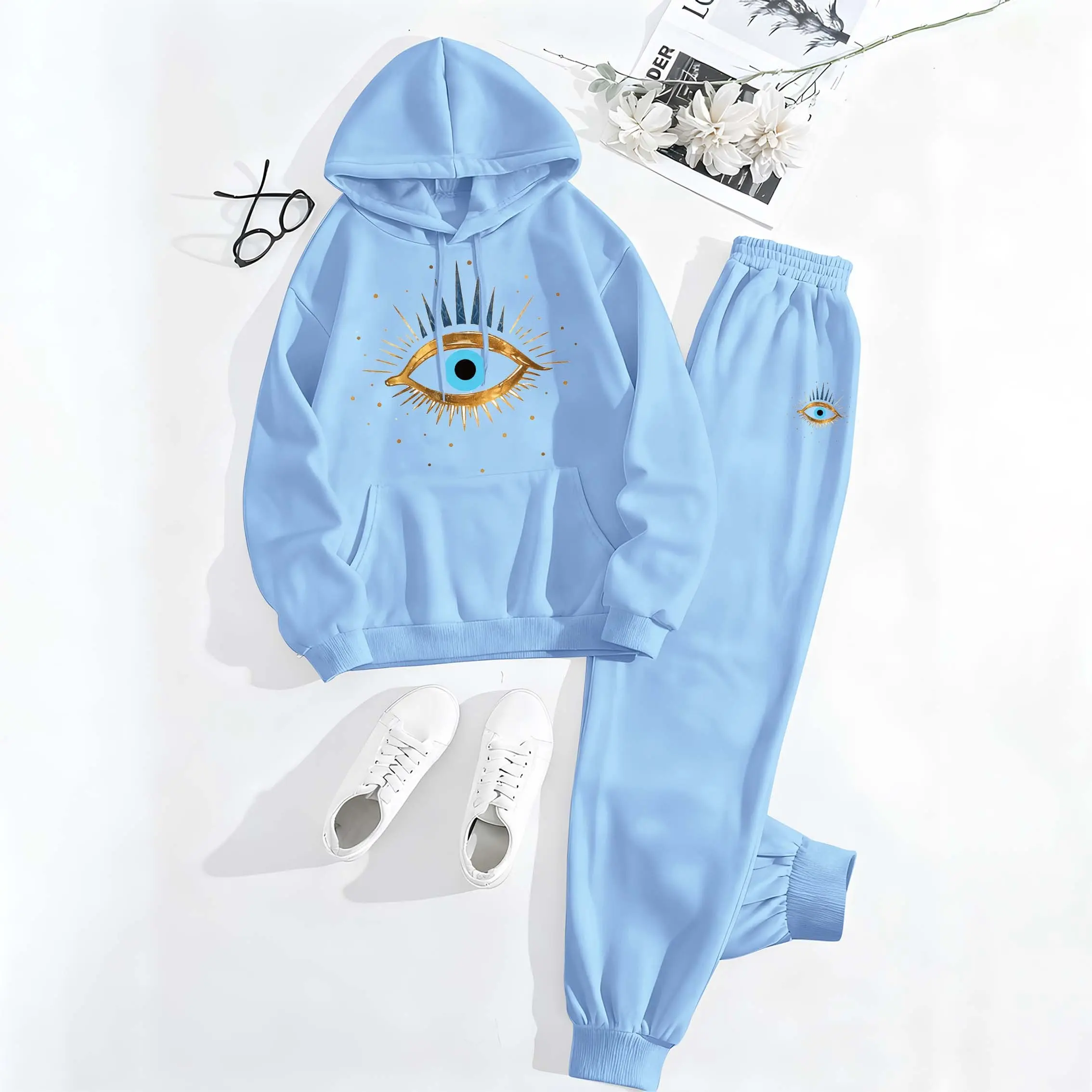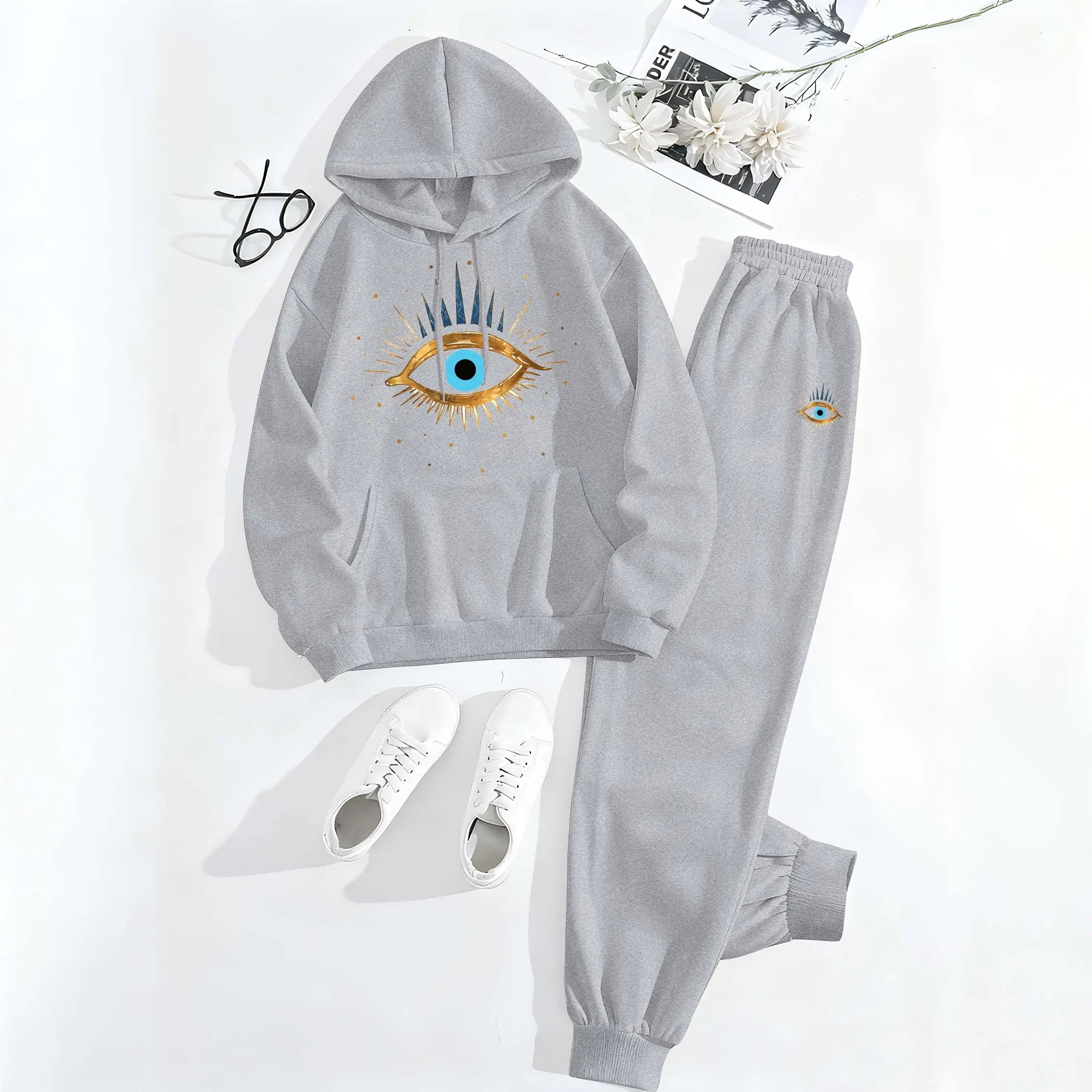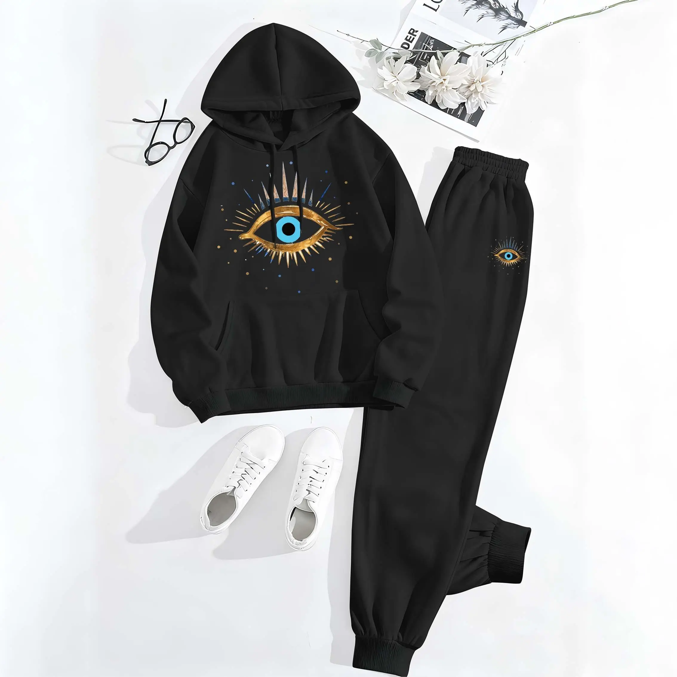 Printed Hoodie & Drawstring Sweatpants Set