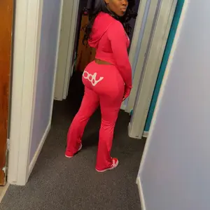 This two-piece is absolutely tea! I weigh 136 and I’m 5’4 this set is a small size. It fits comfortably and compliments my shape of my body, This color is so cute. Looks even better on darker skin! The material is a thinner material so be prepared if it’s cold but I would but again. 10/10 in photos.