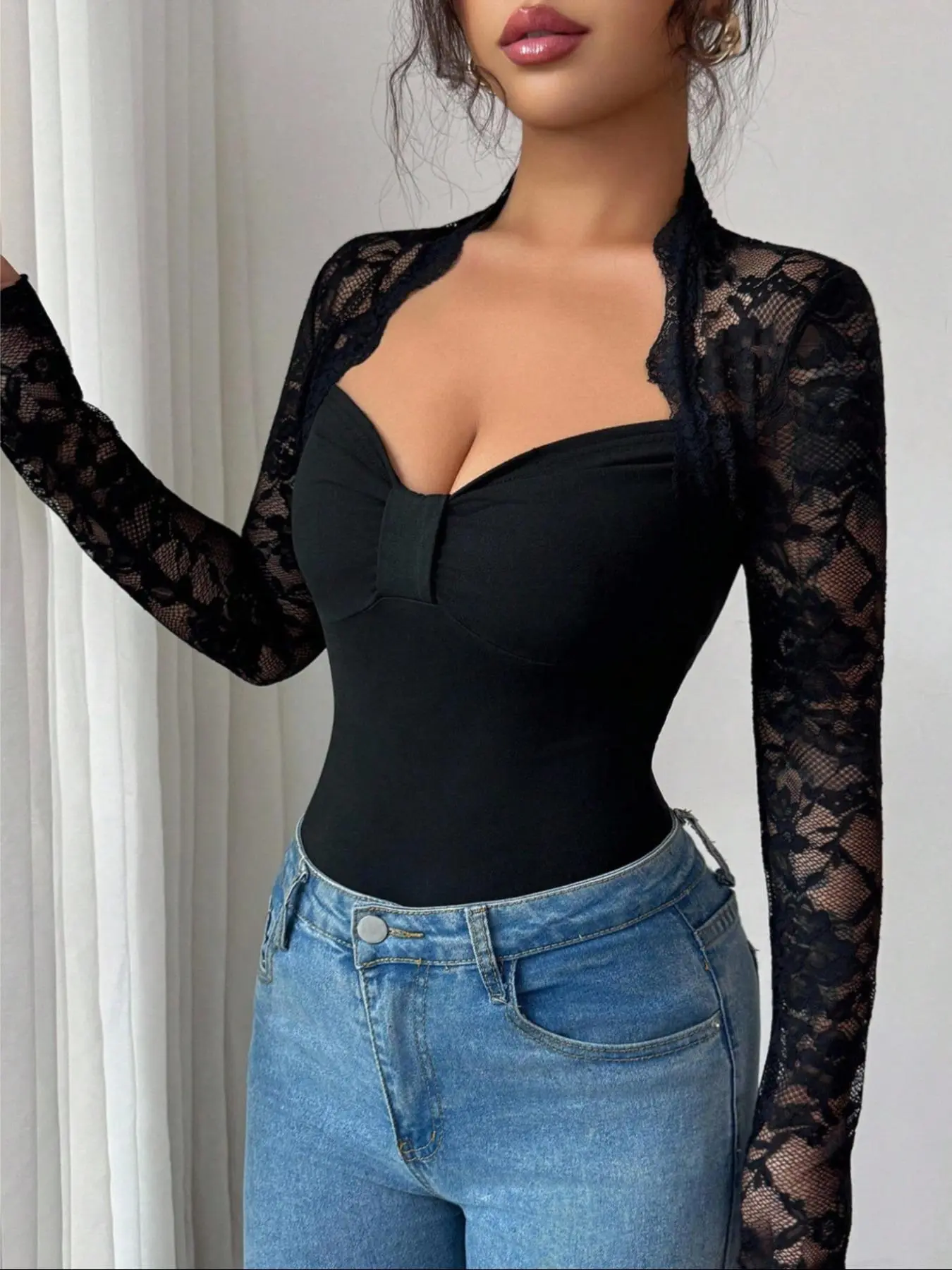 【Lace detailing】: The delicate lace stitching adds a sophisticated touch, elevating the overall aesthetic of the garment.