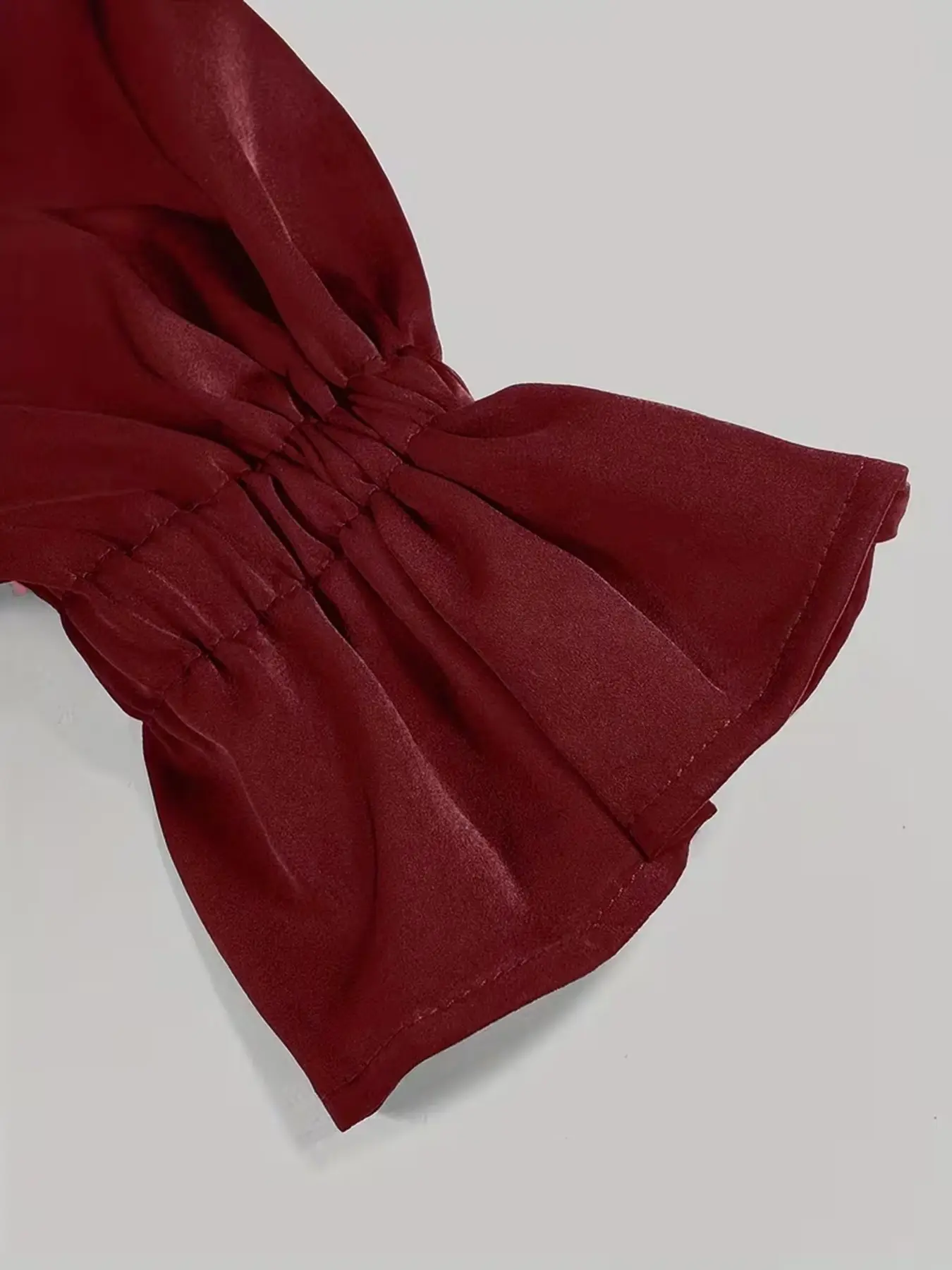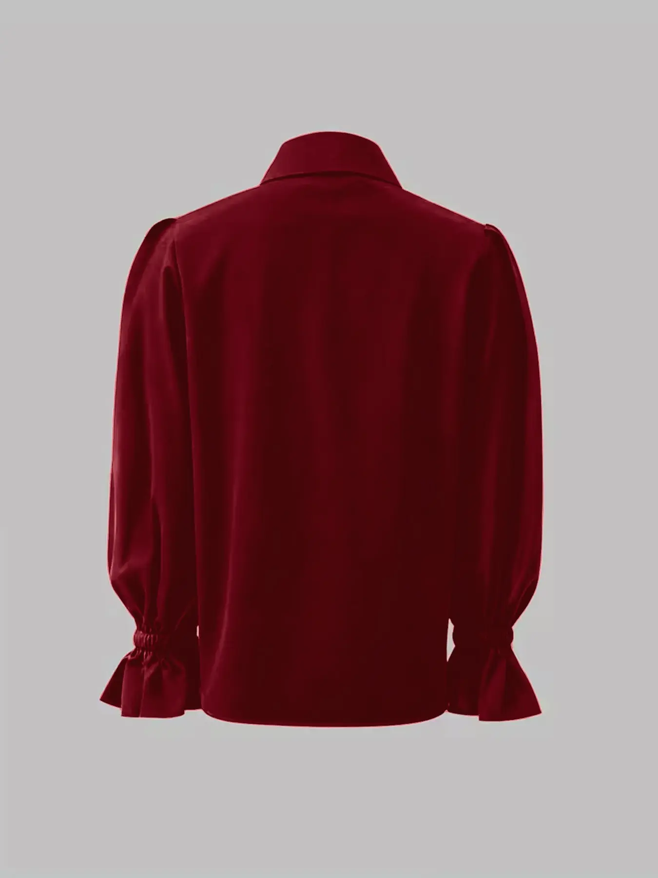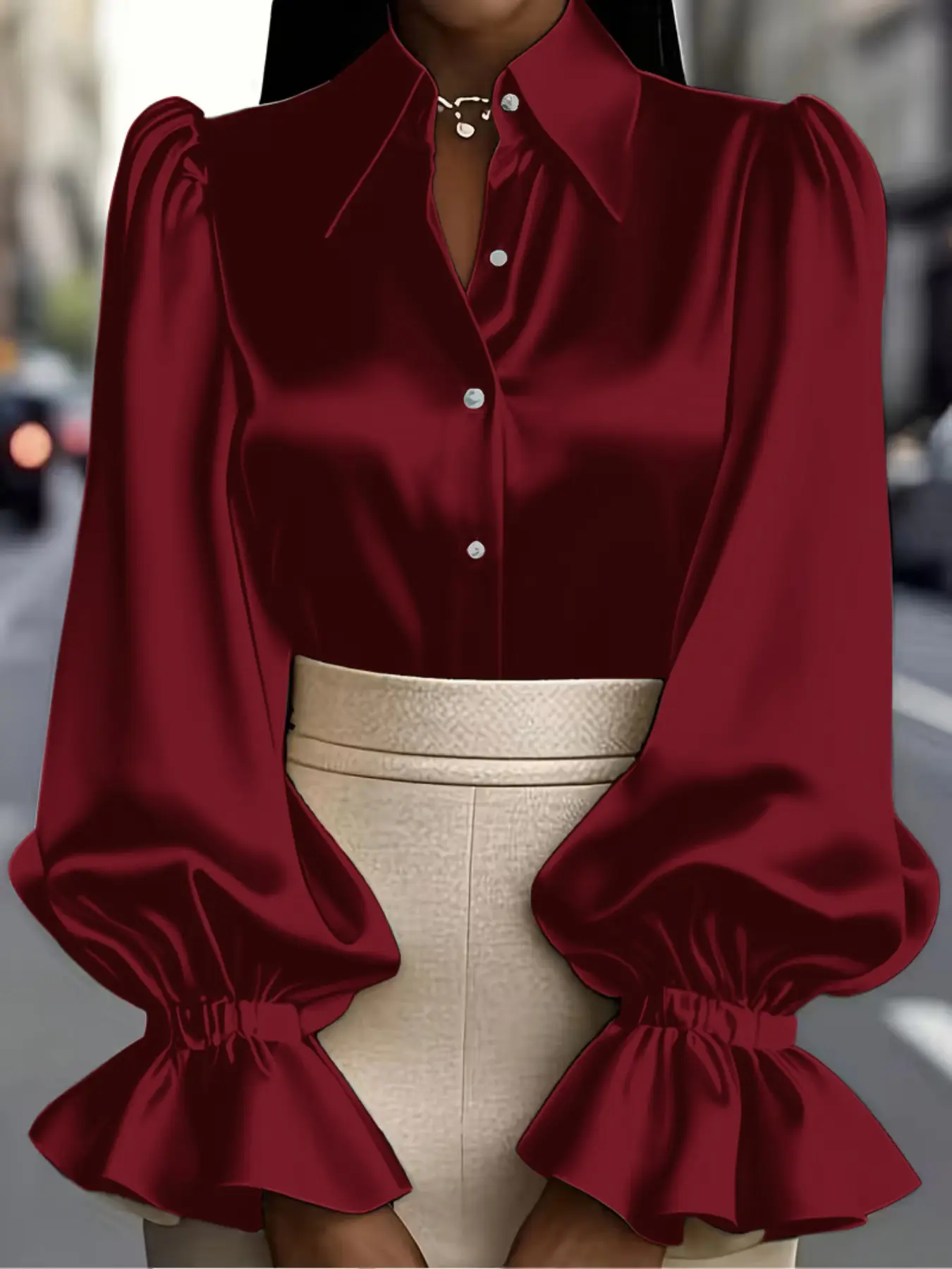 5. Women's Solid Color Fashion Flared Bell Sleeve Long Sleeve Button Shirt, Stylish Casual Blouse for Daily Wear, Ladies' Clothing