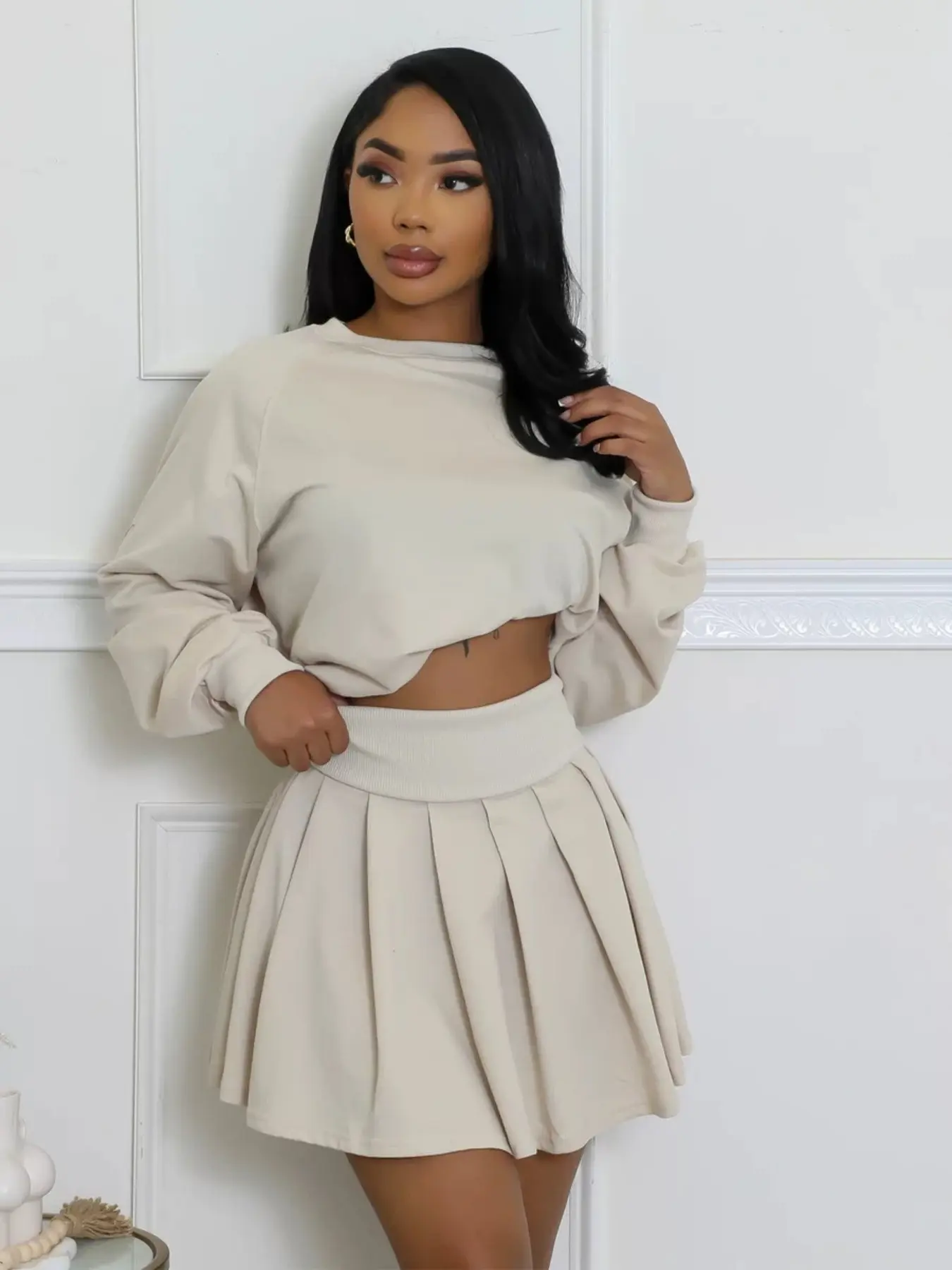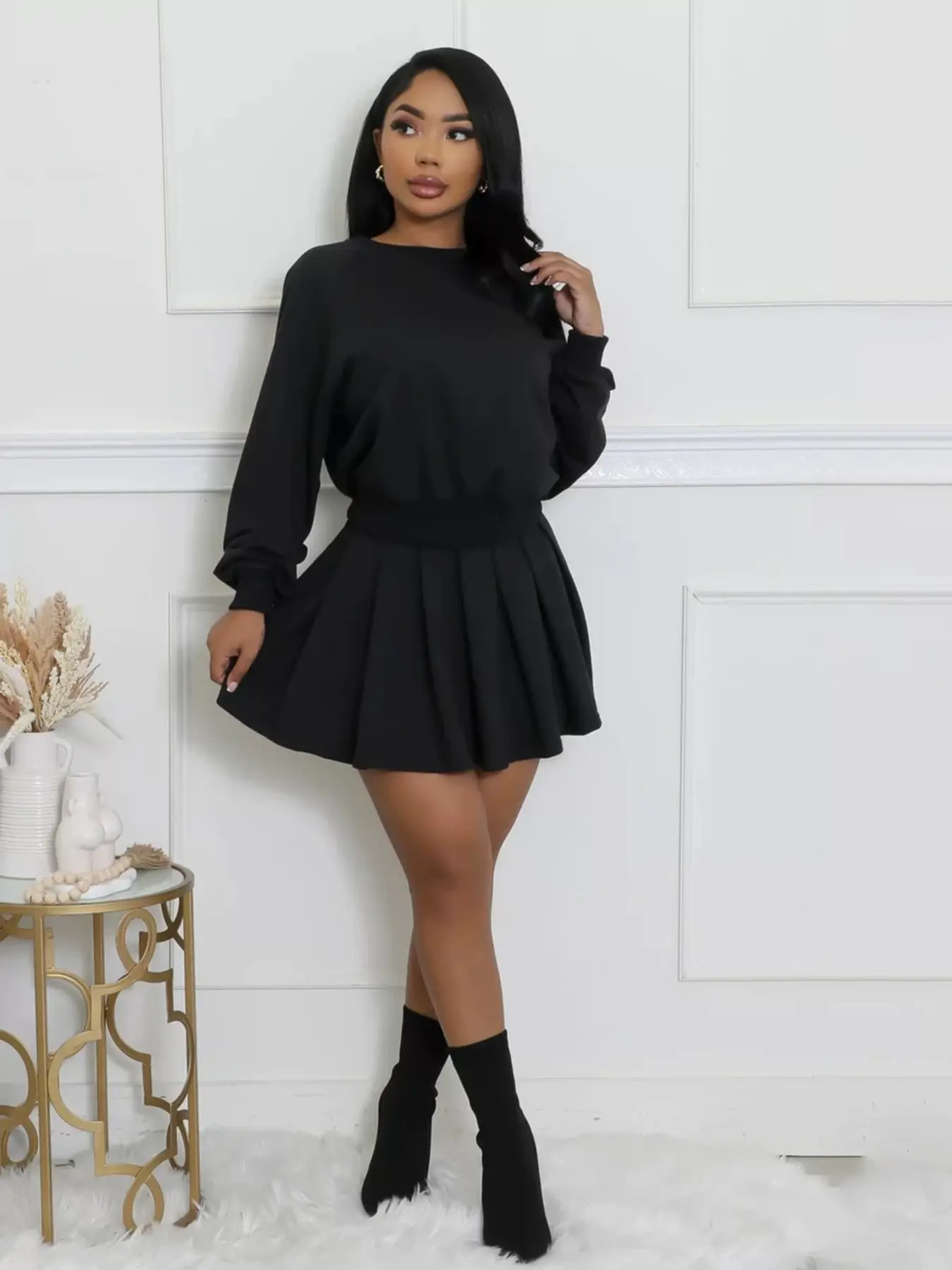 Loving this good two piece set! #tiktokshop #2pieceset #sweatshirt #pleatedskirt #blackfriday