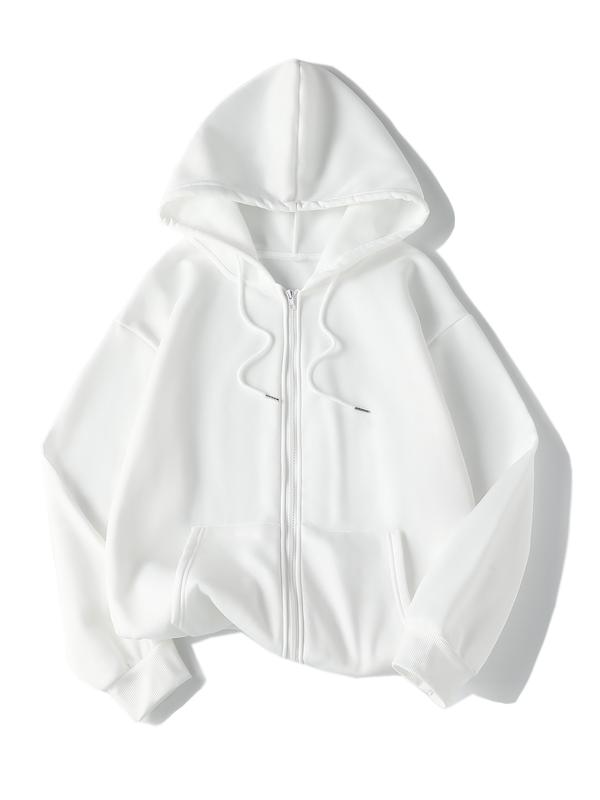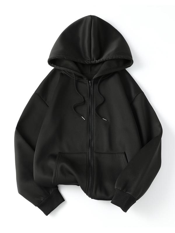 Women's Fashion Fall Winter Drawstring Hoodie, Plain Zipper Jacket Coat, Casual Loose Fit Long Sleeve Top, Versatile New Arrival, Cozy Breathable Clothing