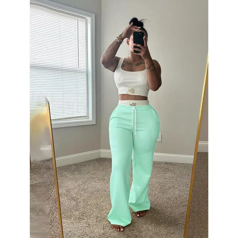 5. New Drop! European - American Style Cross - border Trendy Color - Blocked Double - Waistband Layered Loose Street - style Athletic Casual Trousers Two - Piece Set for Women