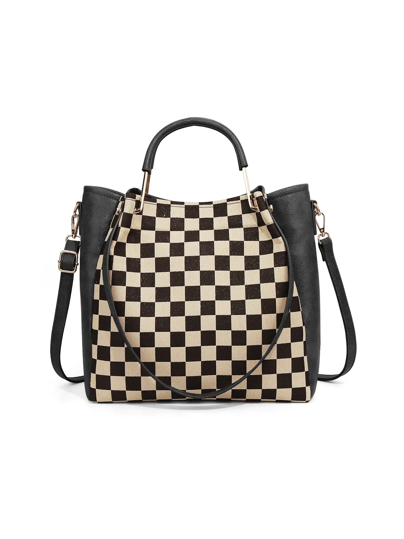 Women's Fashionable Checkered Handbag Set, Including Large Capacity Handbag & Crossbody Bag, Trendy Versatile Daily Commuting Bag Set