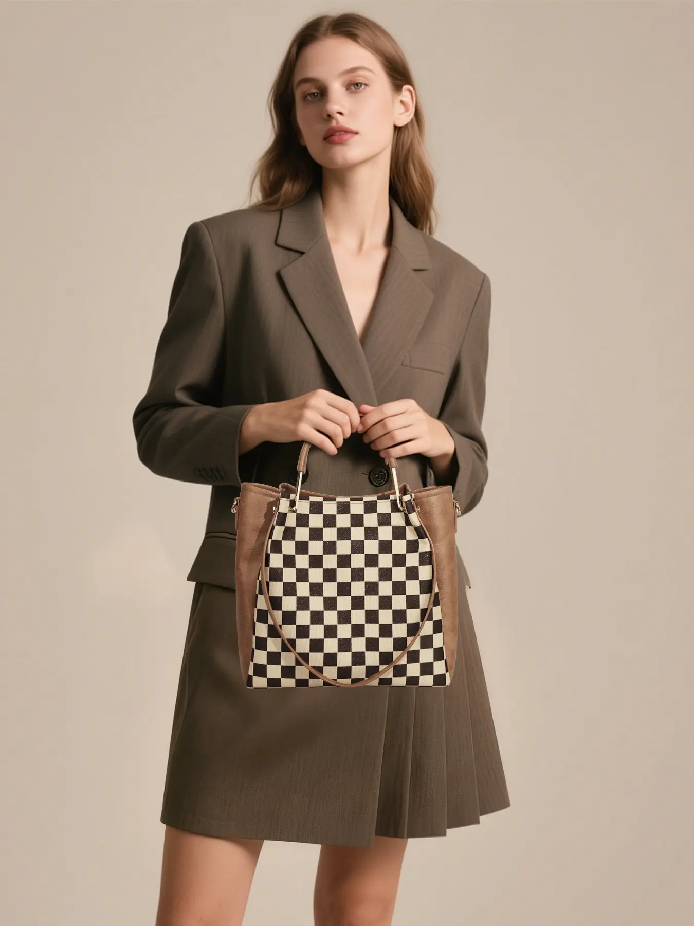 Women's Fashionable cute affordable Checkered Handbag Set, Including Large Capacity Handbag & Crossbody Bag, Trendy Versatile Daily Commuting Bag Set #cutebag #bag #purse #checkered #fashion